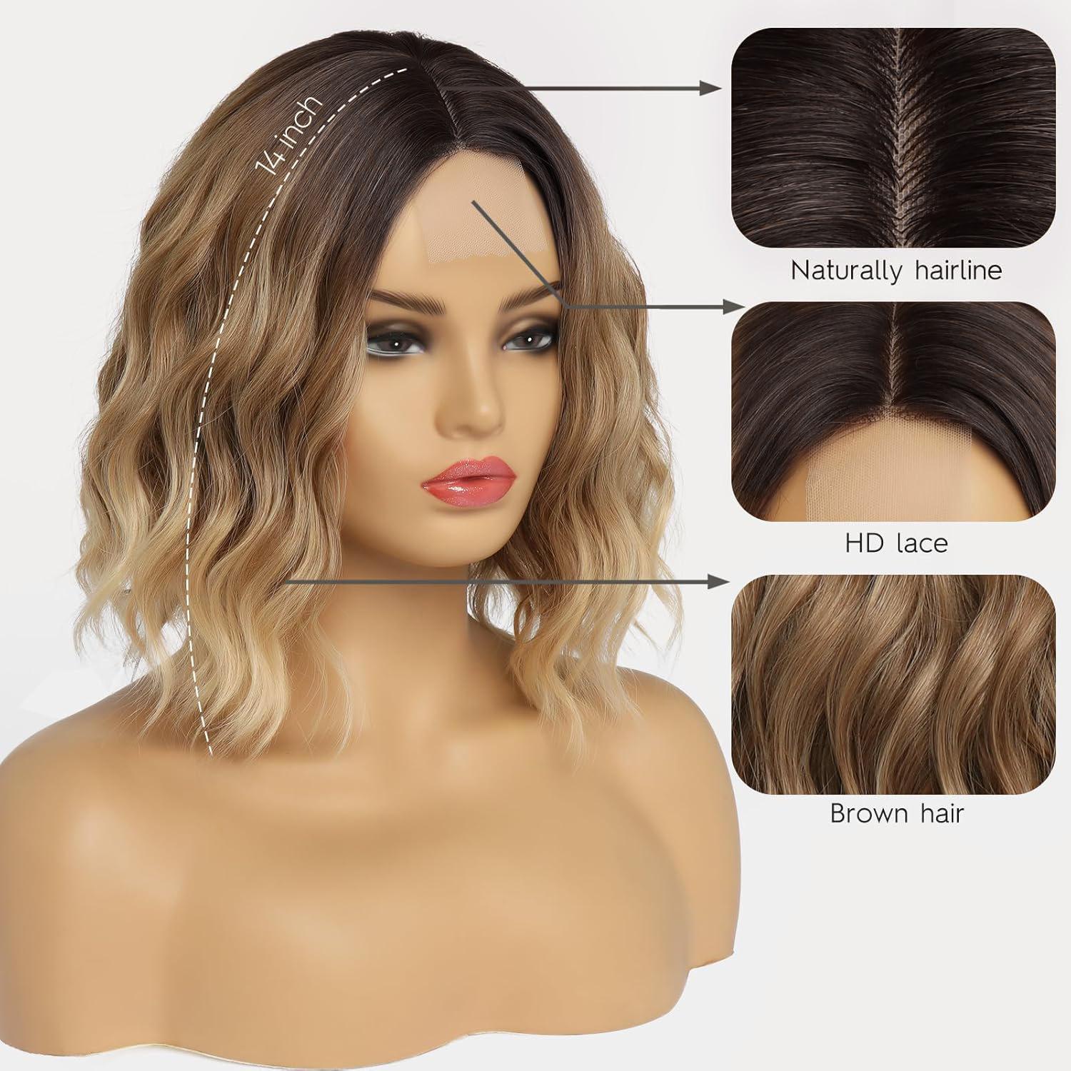 Peruca Feminina Europeia e Americana Peruca de Renda Frontal Média Pequena Renda Destaque Tintura Onda de Água Cabelo Curto Encaracolado Fibra Química Perucas de Capacete
