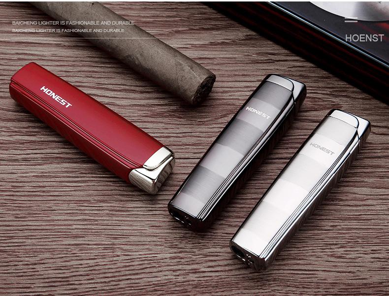 Baicheng isqueiro inflável à prova de vento personalidade criativa homens charuto reto isqueiro eletrônico de metal presente para fumar atacado