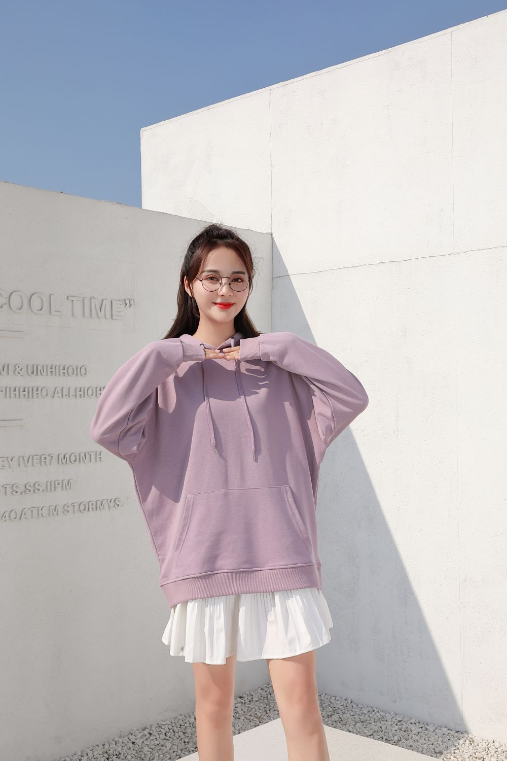 [Moletom felpudo de algodão 85% 300g] marca da moda ombro caído cor sólida personalizado