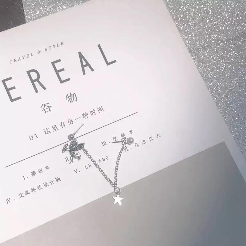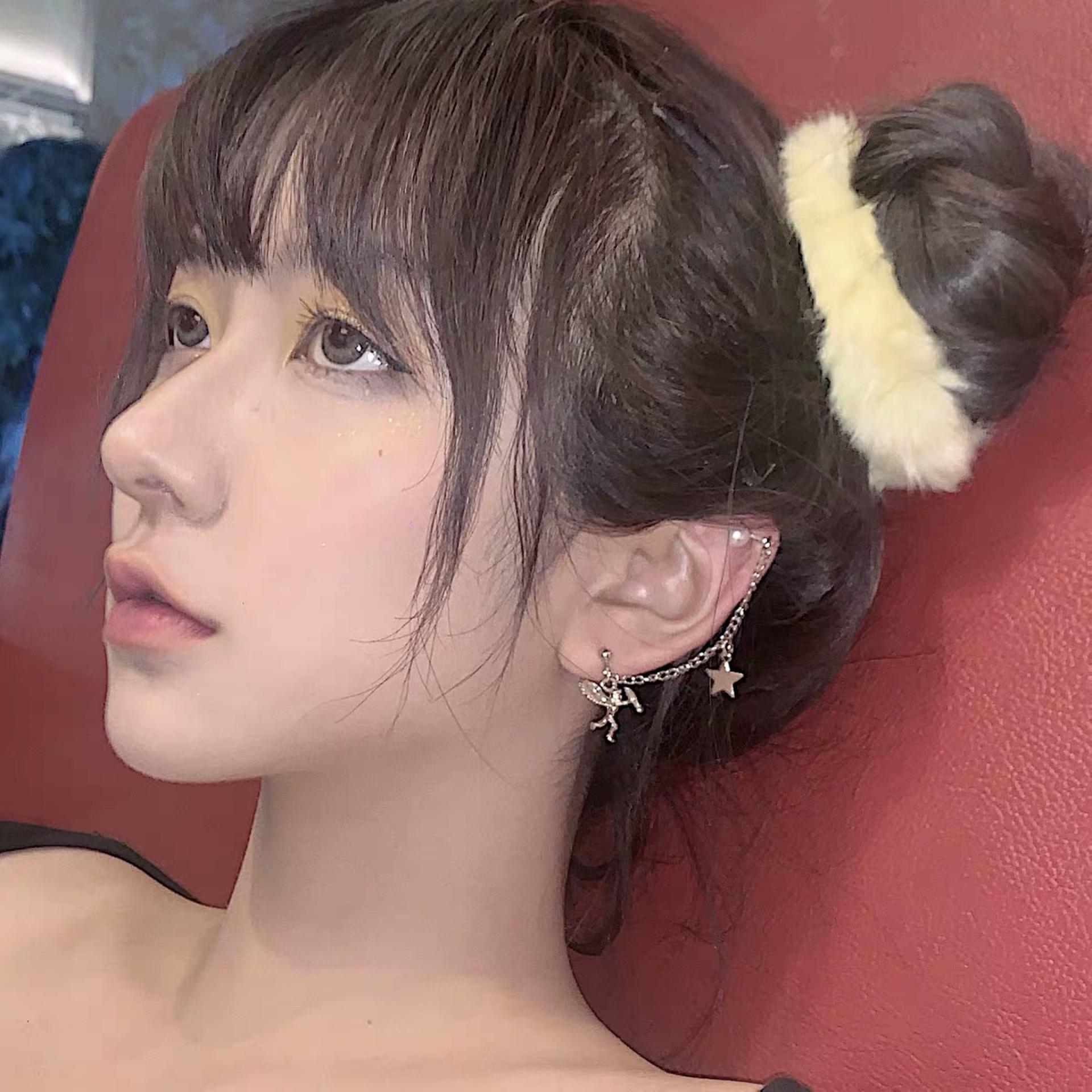 Brincos Clipe de Orelha Cupido Estilo Coreano Celebridade da Internet Brincos de Pérola Super Fada Femininos em Forma de Coração Sem Furos na Orelha com Corrente de Borla para Mulheres