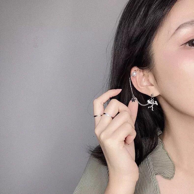 Cupid ear clip + ear clip, Cupid Stud Earrings + Stud Earrings