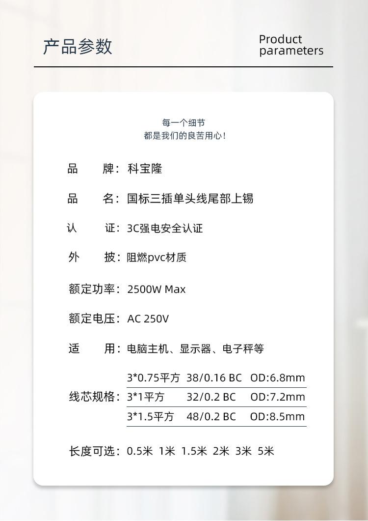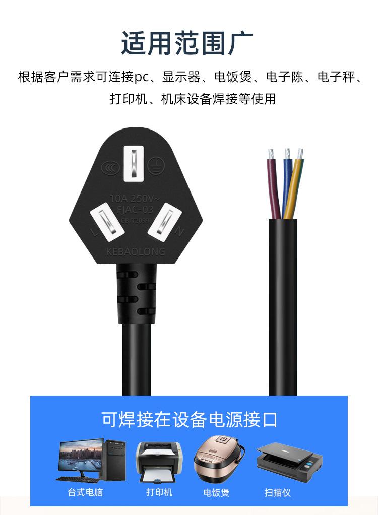Compre Atacado Padrão Nacional Três Pinos 0.75/1/1.5 Rabo Quadrado Superior Estanhado AC Plugue de Cabo de Alimentação Elétrica de Cabeça Simples no atacado no Joom.pro