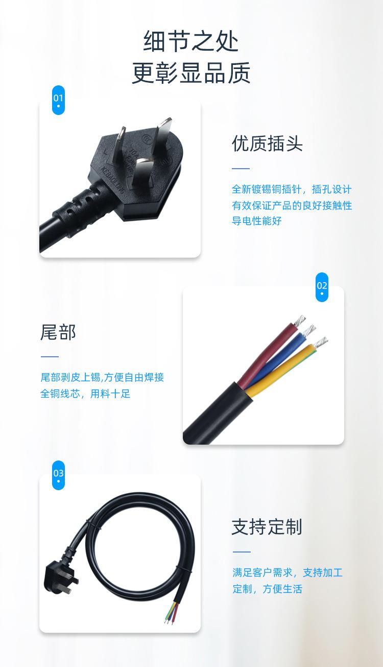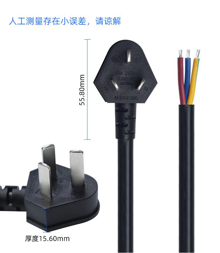 Atacado Padrão Nacional Três Pinos 0.75/1/1.5 Rabo Quadrado Superior Estanhado AC Plugue de Cabo de Alimentação Elétrica de Cabeça Simples