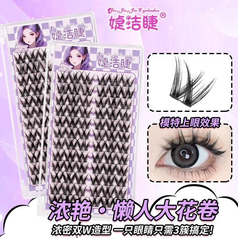 Cílios postiços grandes em formato de W, cílios postiços grossos, fotogênicos, pequenos cachos de flores, cachos grandes e densos, cílios postiços segmentados europeus leves
