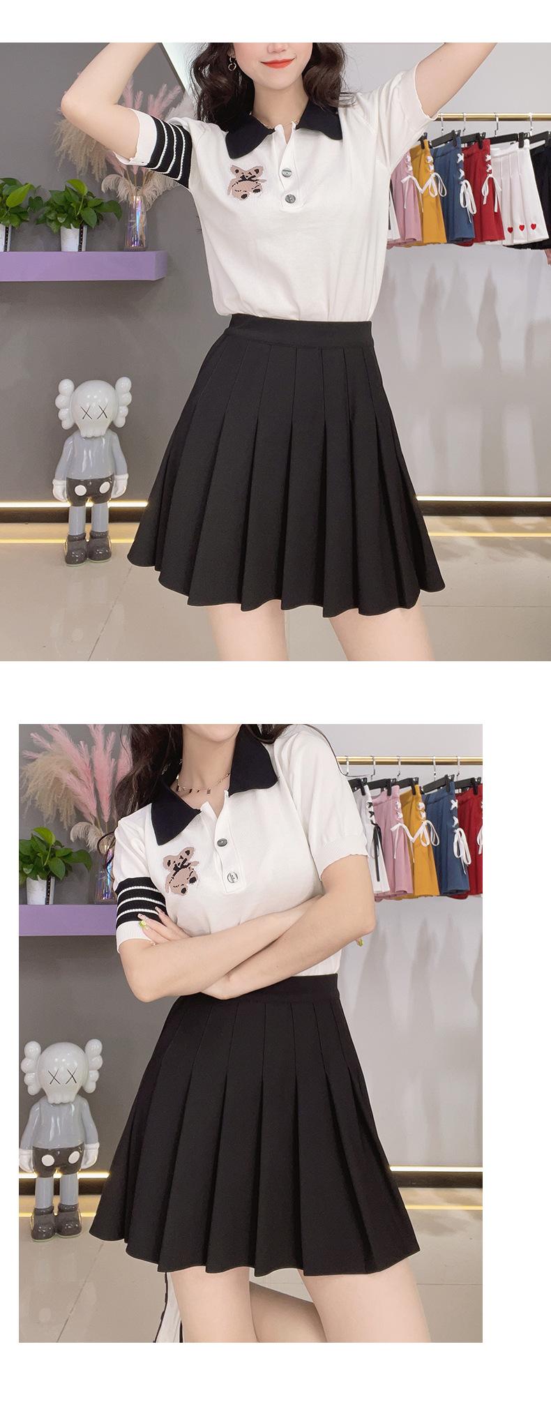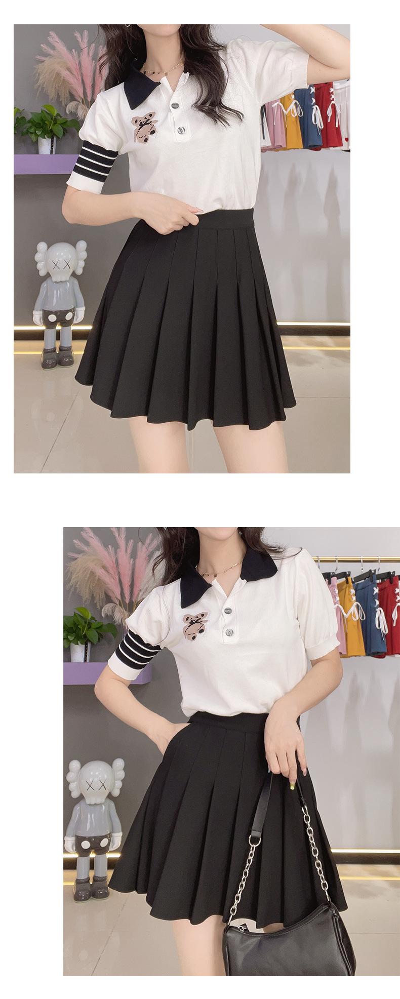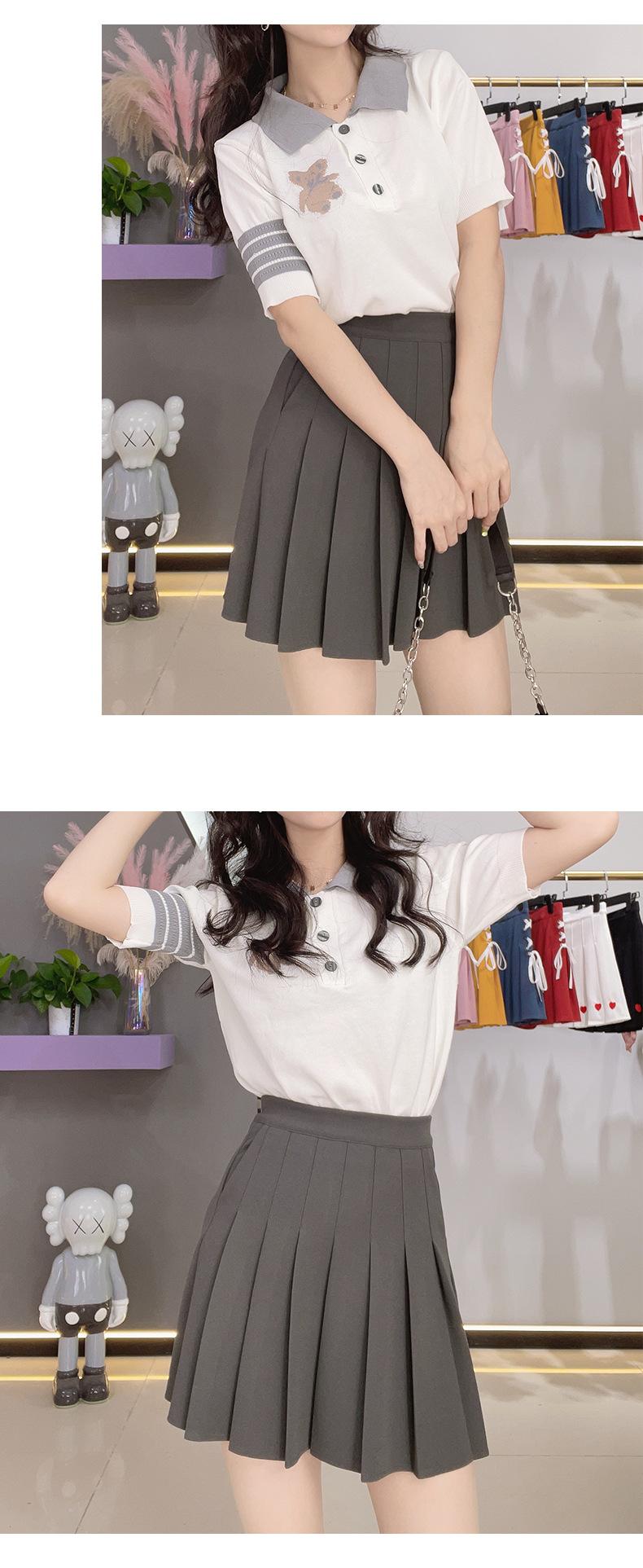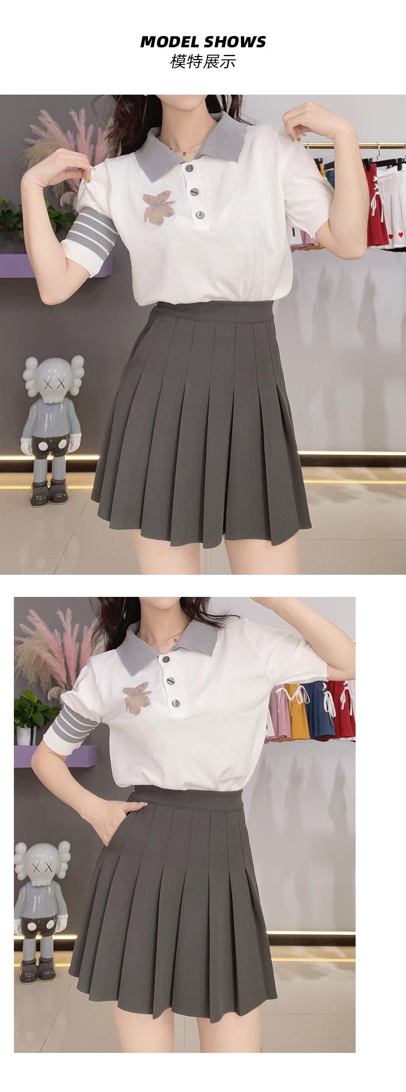Verão All-match Emagrecimento Manga Curta Top de Três Barras Camiseta Feminina 2022 Moda Casual Roupa Externa Colocação Saia Plissada