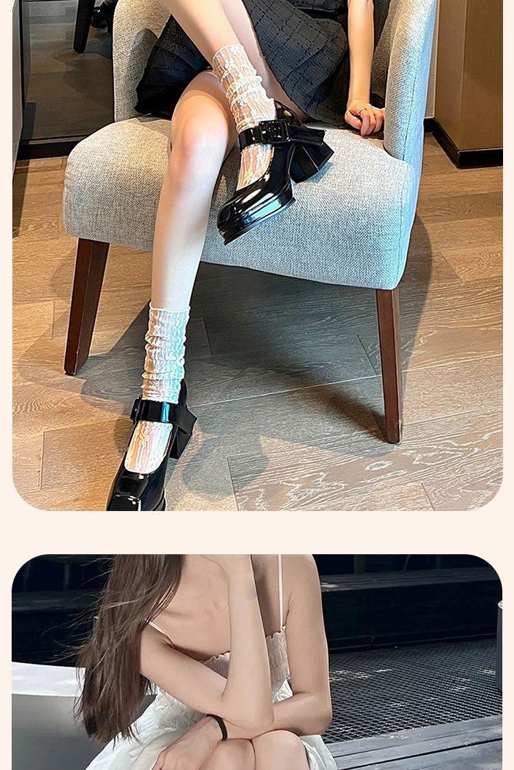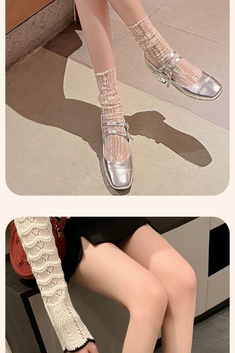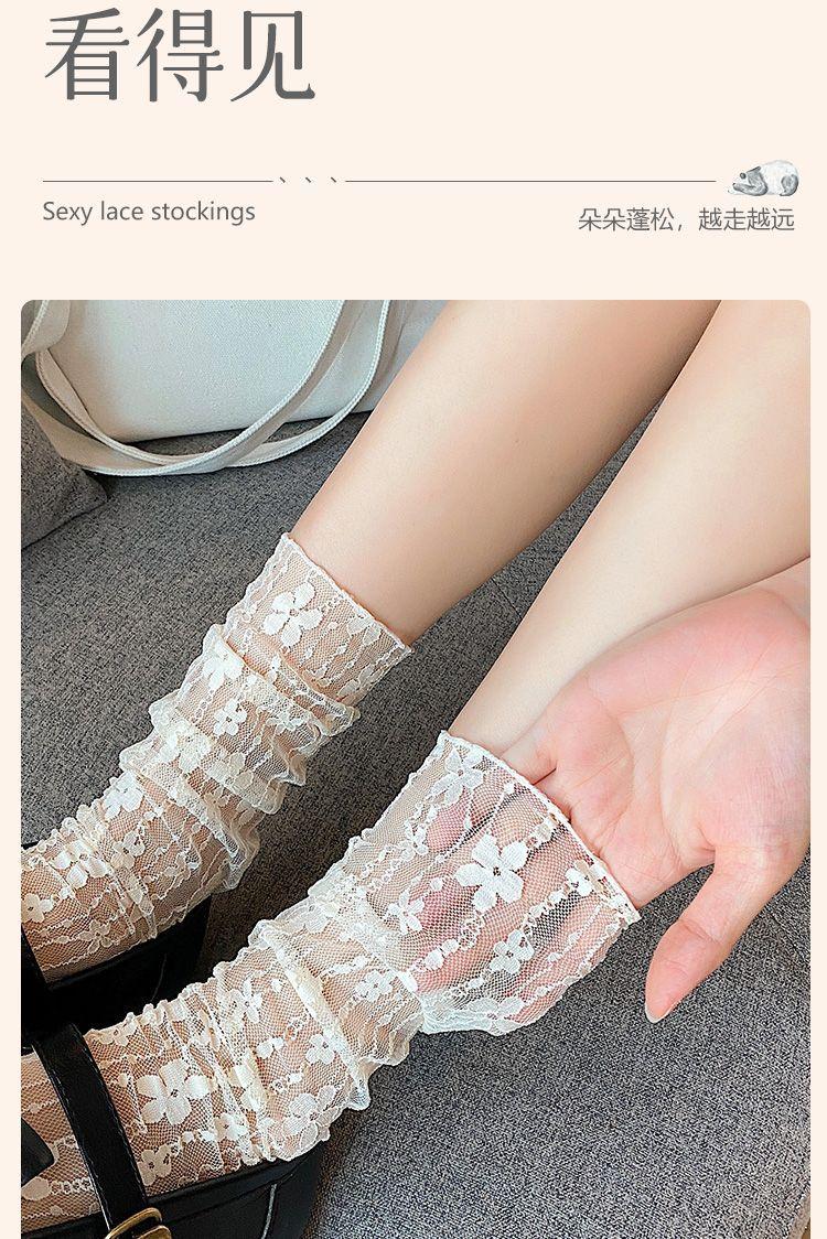 Compre Meias de Renda Branca Franzidas para Mulheres, Meias Finas de Verão até o Meio da Panturrilha em Mesh Combinadas com Sapatos de Couro Mary Jane, Meias Curtas com Estilo Menininha no atacado no Joom.pro