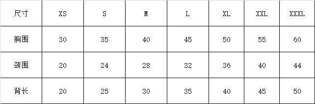 Lembrete amigável: as roupas de cães e gatos devem sercircunferência torácicaO peso não pode ser usado como padrão.