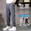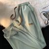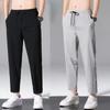 Calças de moletom masculinas soltas, pequenas, retas, verão, cor sólida, esportivas, calças curtas, nylon, gelo, seda, calças casuais finas