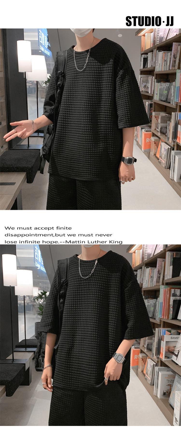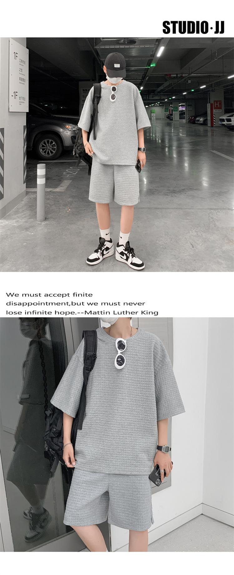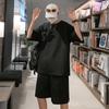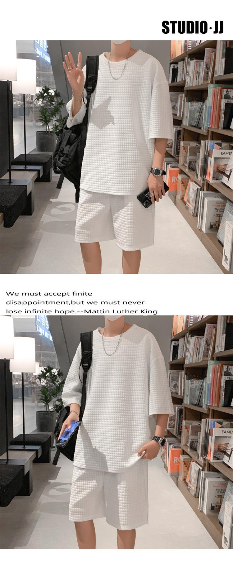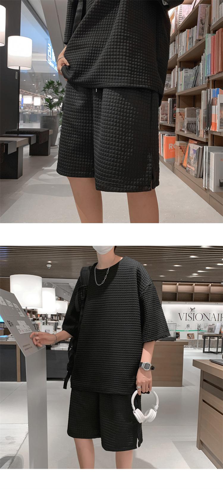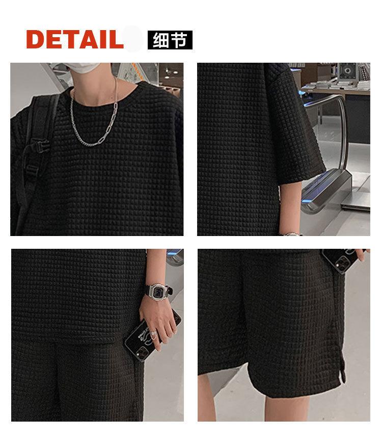 Terno masculino de verão Marca de moda coreana solta 2024 casual cor sólida gola redonda manga curta shorts de perna larga conjunto de duas peças