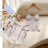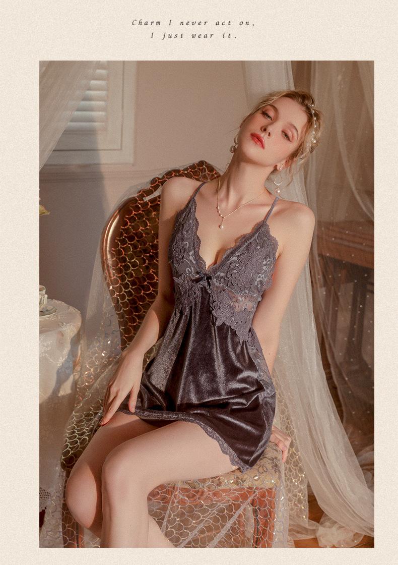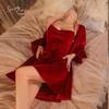 Pijama sexy feminino primavera e outono alça camisola ouro veludo renda linda volta rede vermelha puro desejo vento cinto peito almofada casa vestir