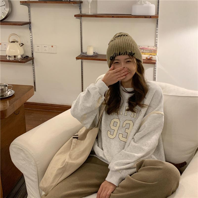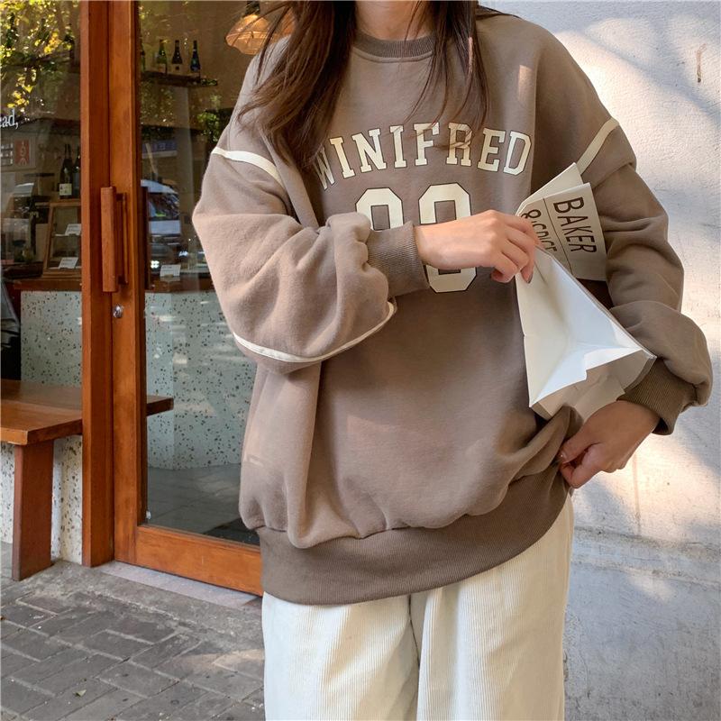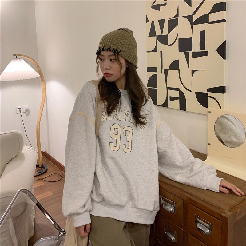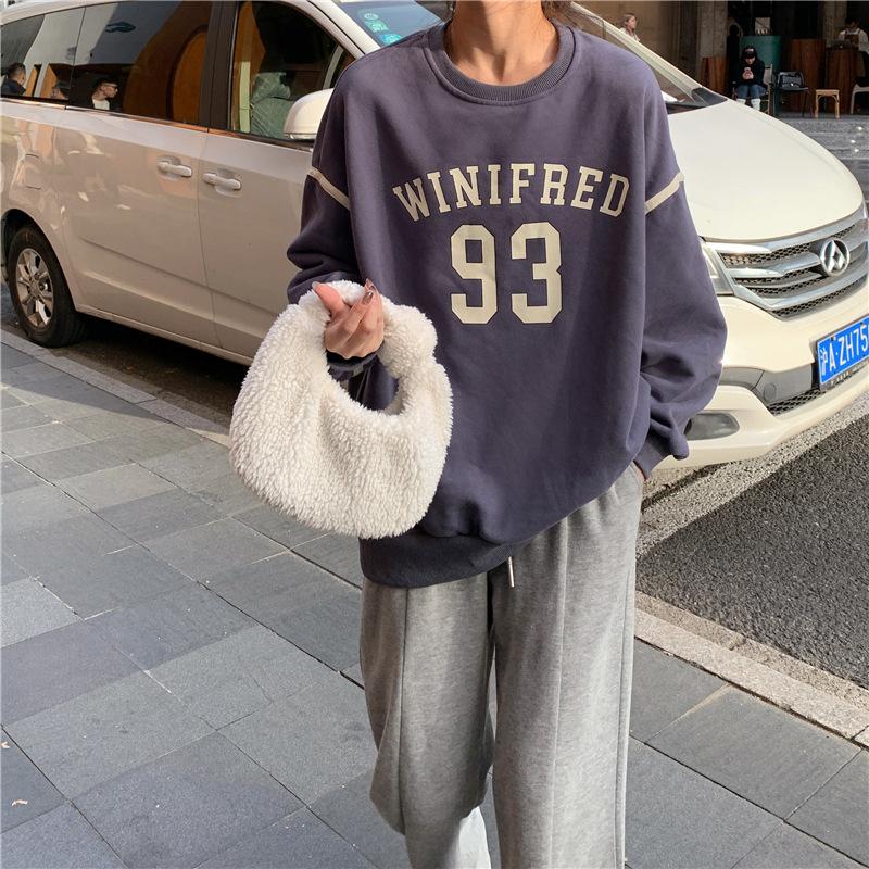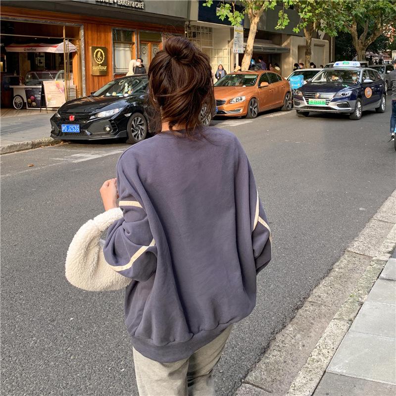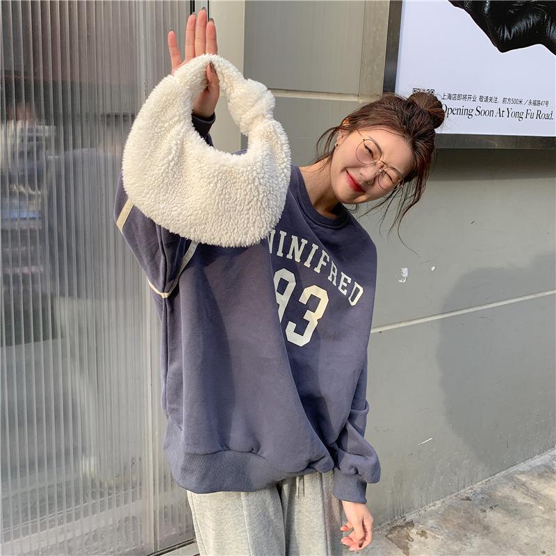 320g de lã forrada de tamanho grande forrada de lã engrossada em torno do pescoço camisola feminina início do outono novo hiphop retro casaco moda