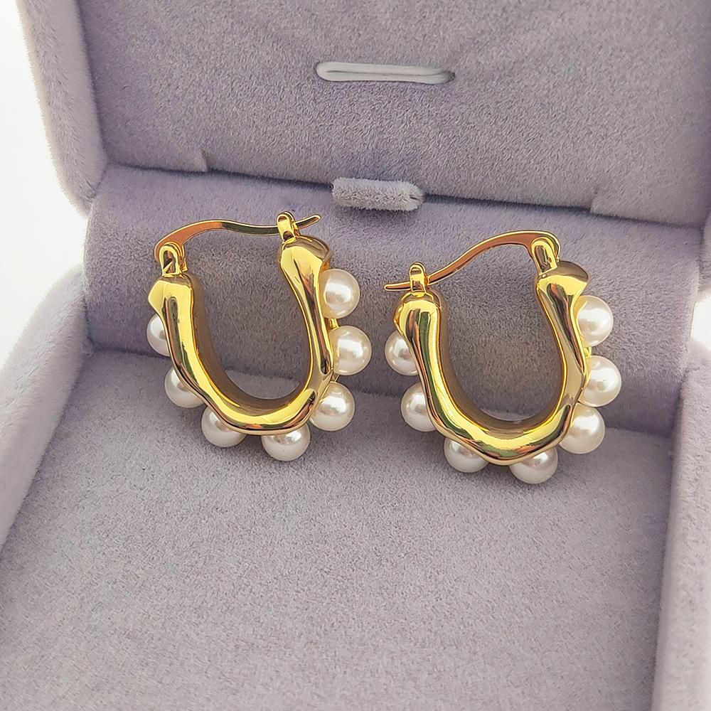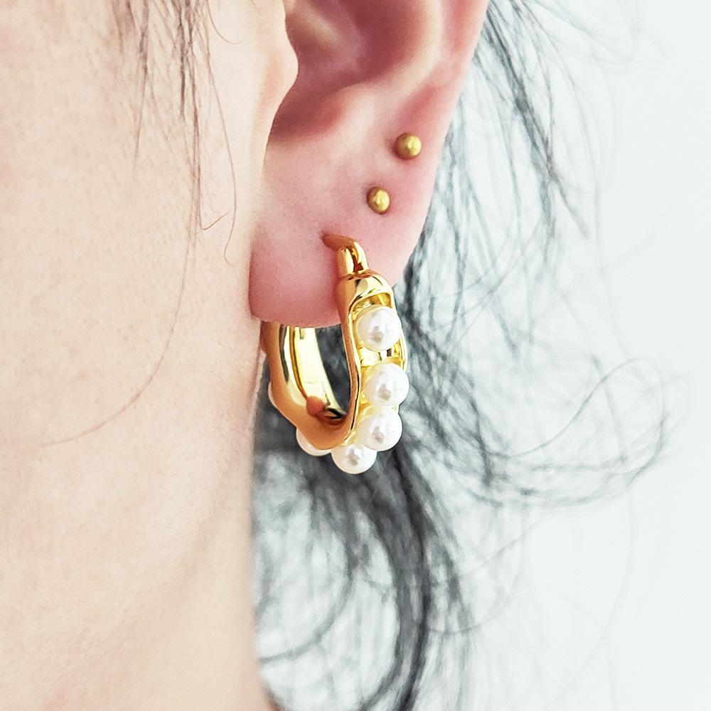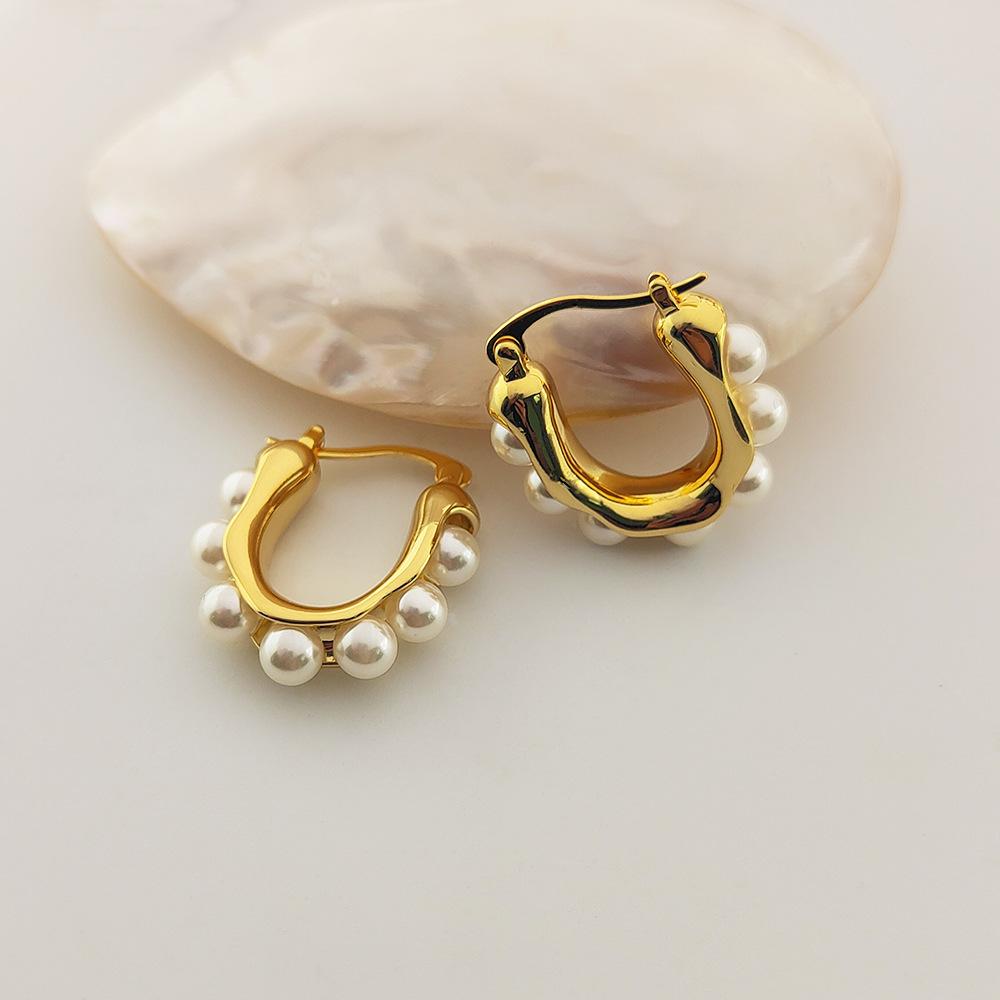 Elegante Gentil Bonito Distintivo Orelha Fivela Moda All-match Latão Banhado A Ouro Brincos Inlay Surround Brincos de Imitação