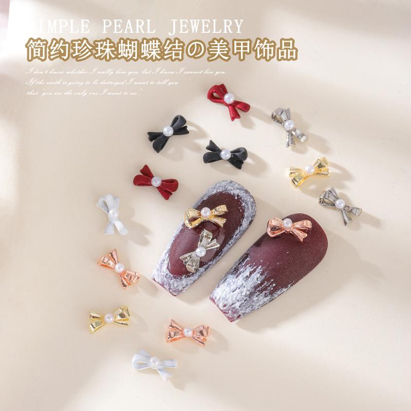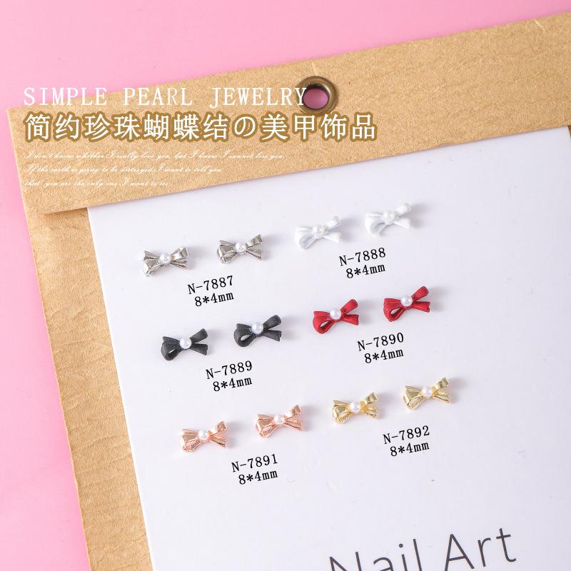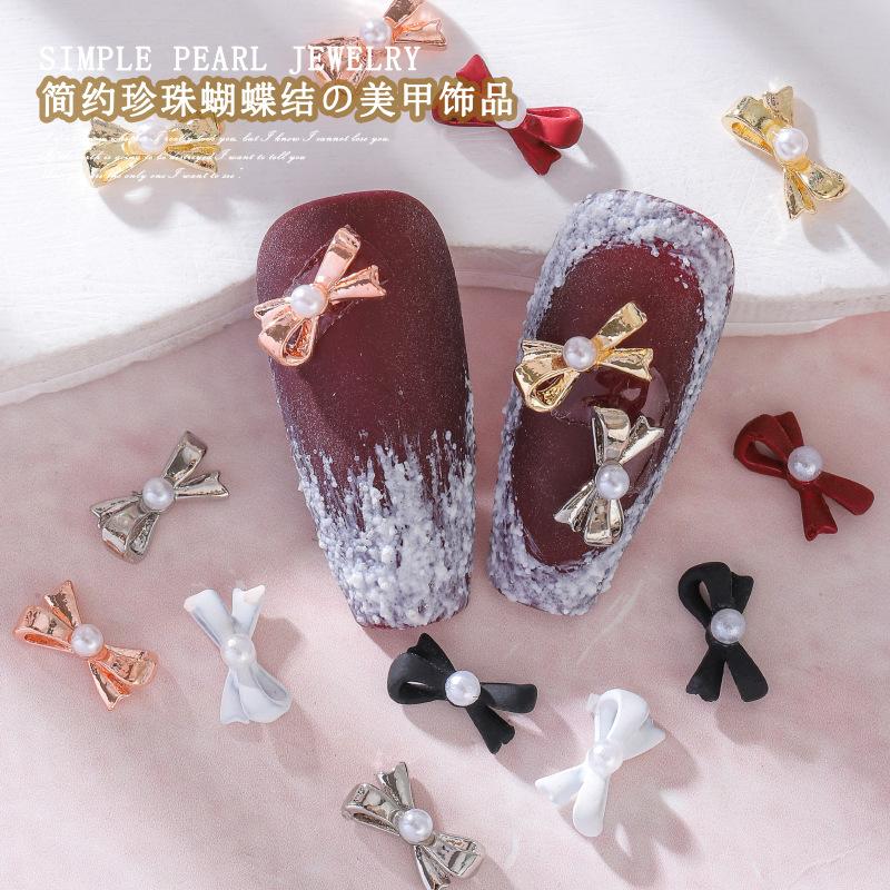 Japonês novo prego de metal pérola gravata borboleta jóias tridimensionais cor arco desgaste prego diy decoração atacado