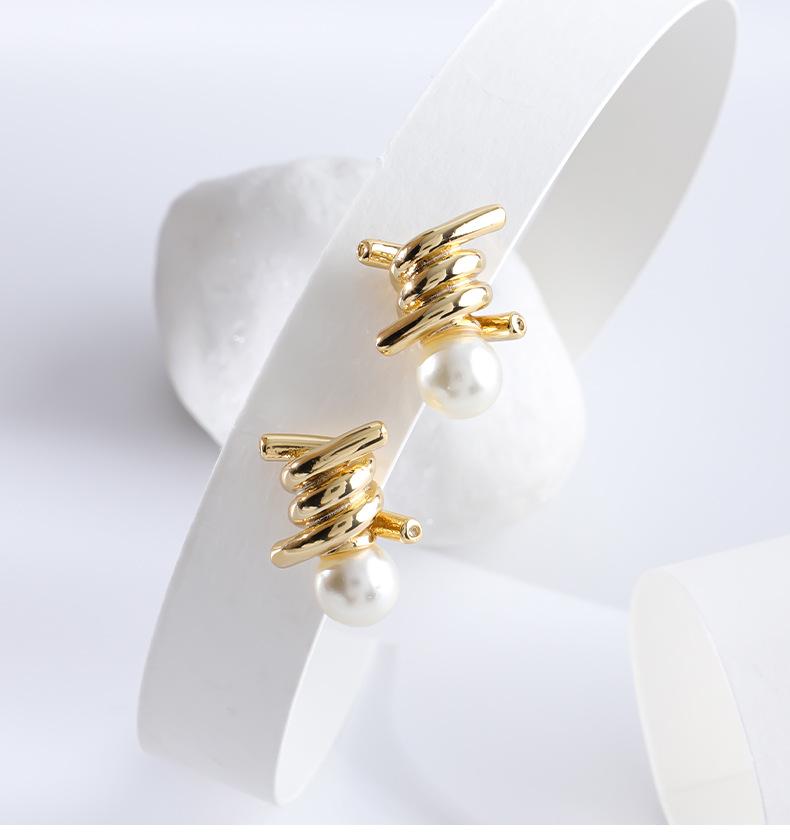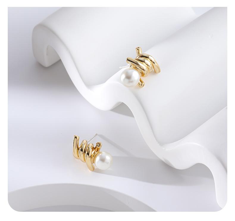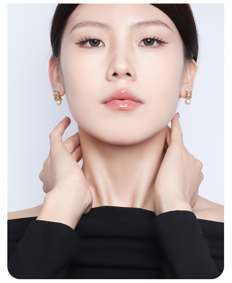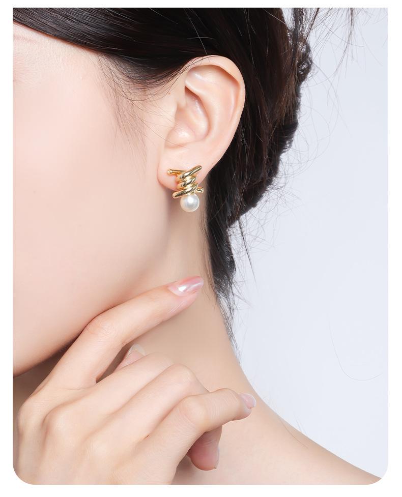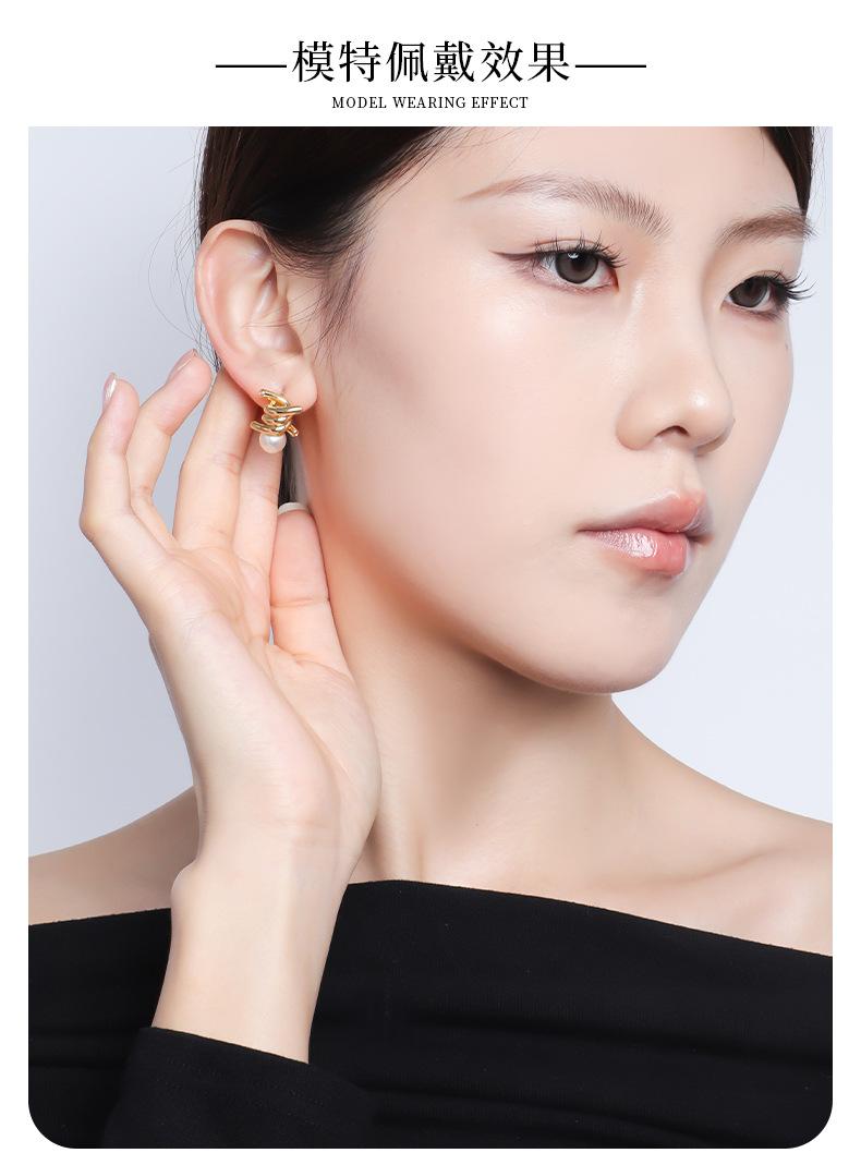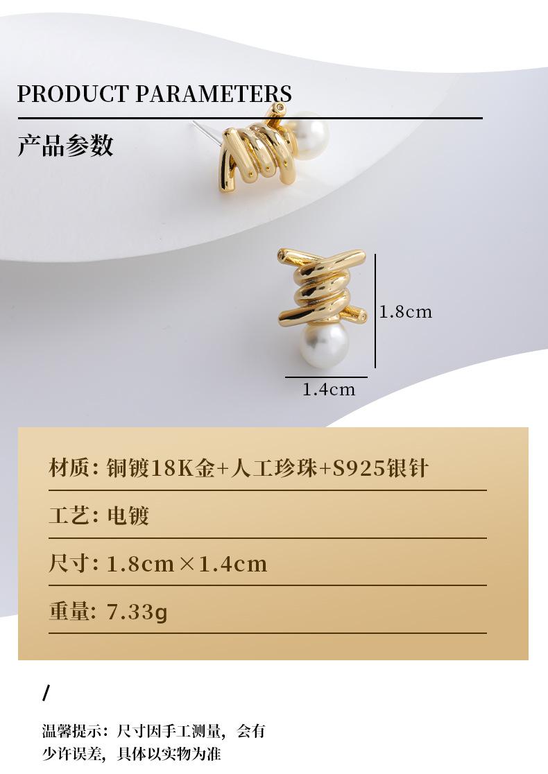 Brincos de pérolas personalizados e elegantes com nó, brincos de agulha de prata s925 de temperamento requintado francês de luxo leve e de alta qualidade para mulheres