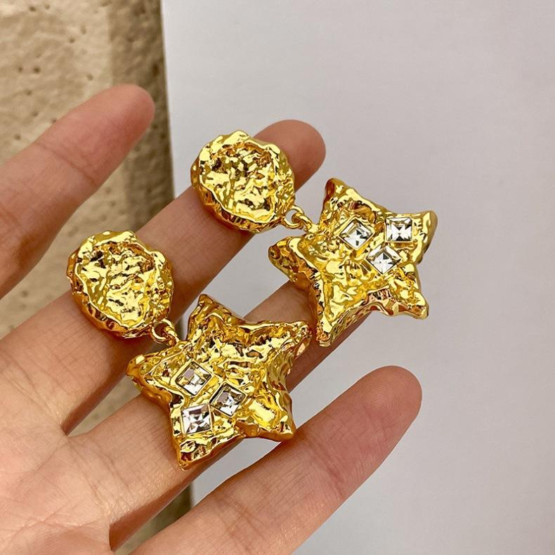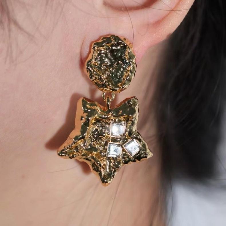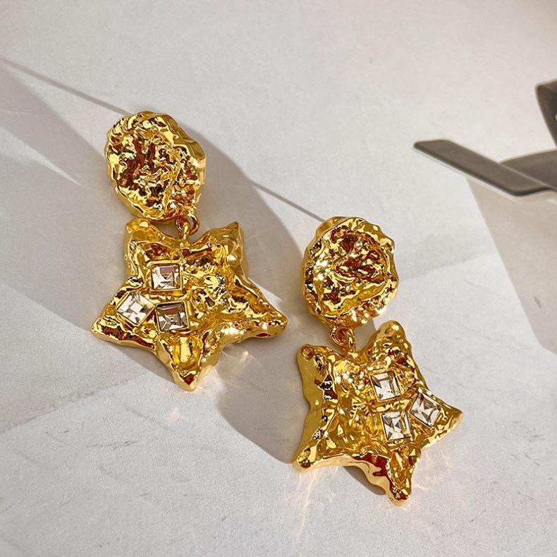 Novo design plissado brincos de lava vintage brincos de estrela de cinco pontas meados de antigos europeus e americanos elegantes corte francês brincos para mulheres