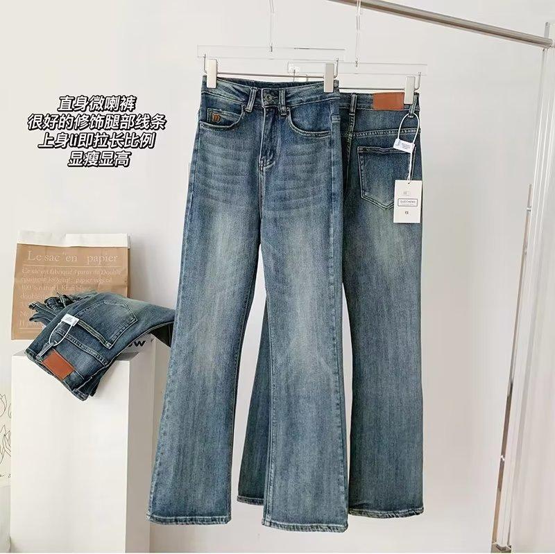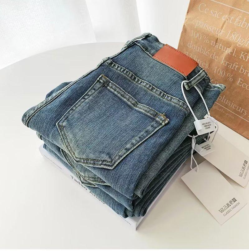 Compre Jeans skinny retrô para mulheres Primavera novo pequeno slim-fit design cintura alta emagrecimento papai calças largas no atacado no Joom.pro