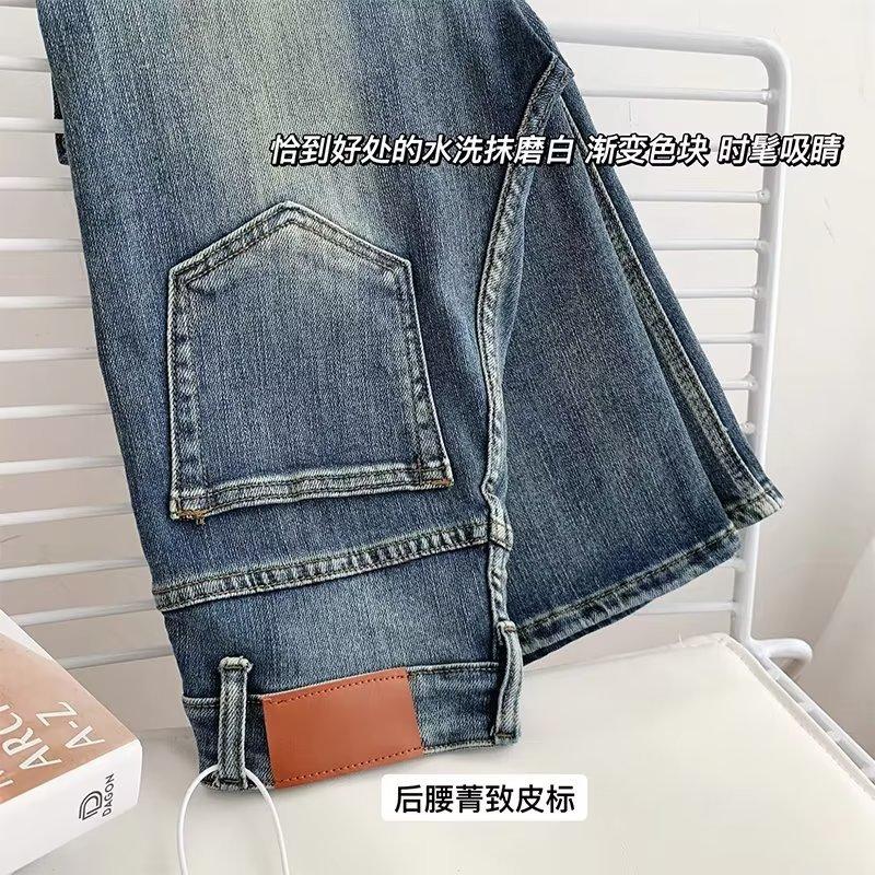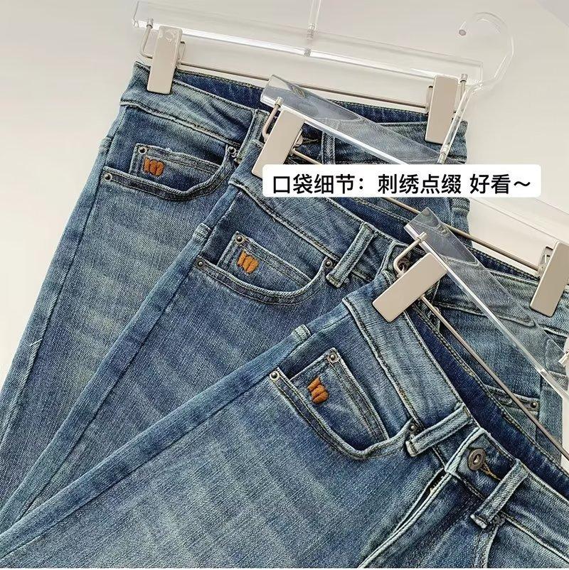Jeans skinny retrô para mulheres Primavera novo pequeno slim-fit design cintura alta emagrecimento papai calças largas