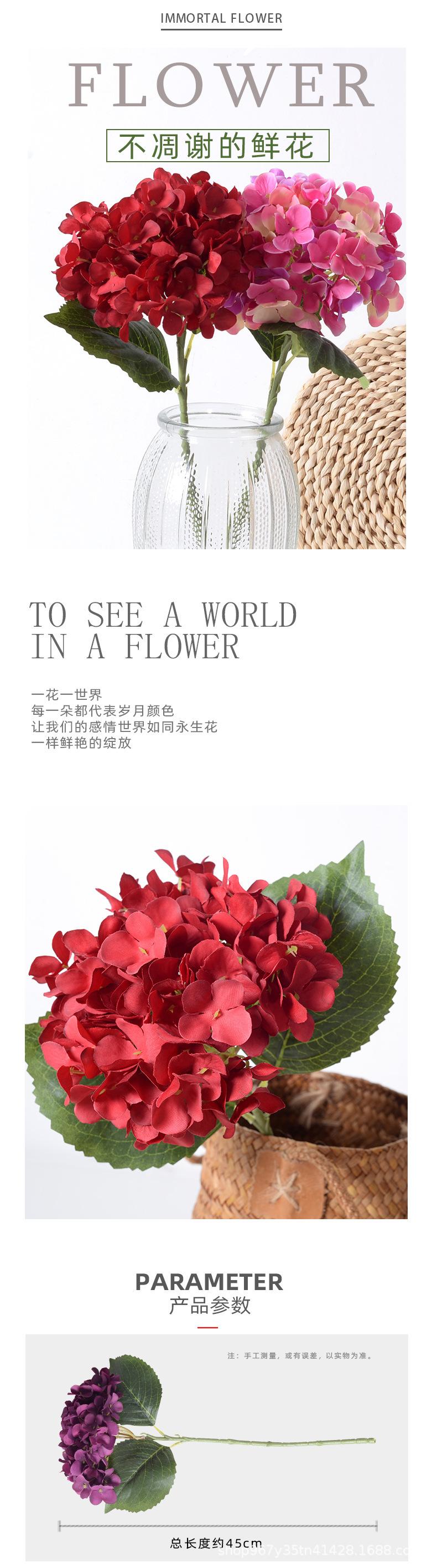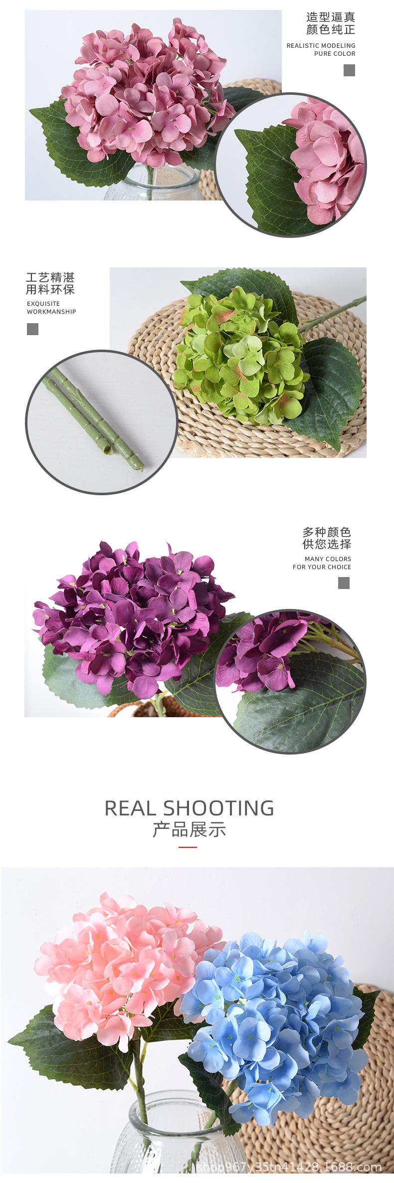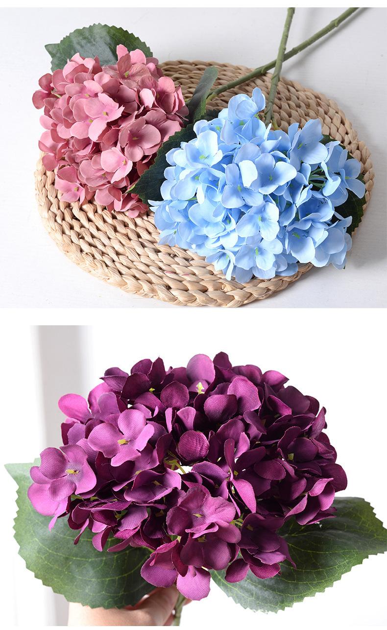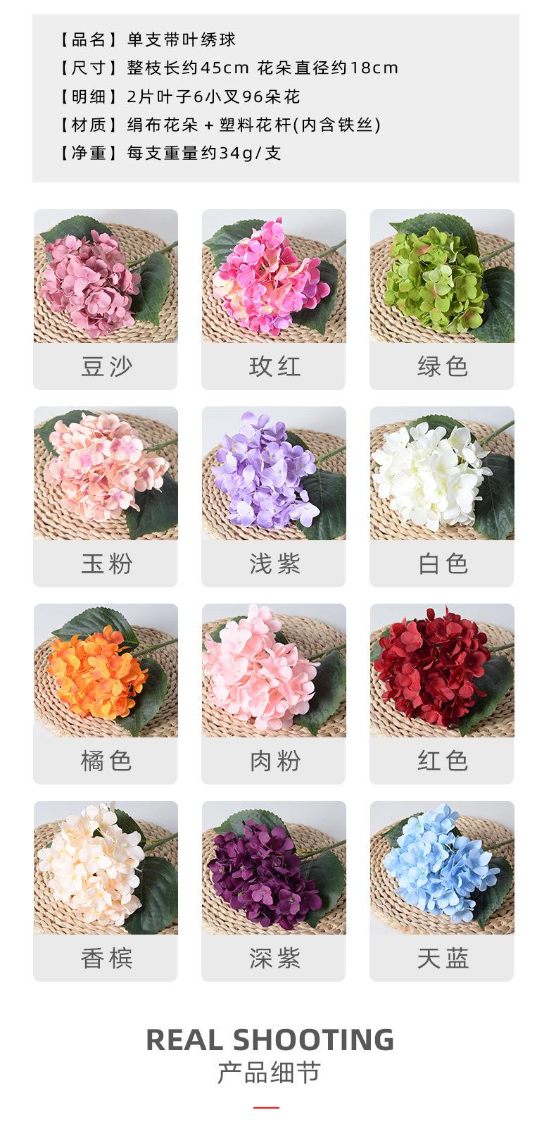Simulação de hortênsia de folha única, casa, casamento, auditório, decoração, fotografia, adereços, flor de seda, flor artificial, flor falsa