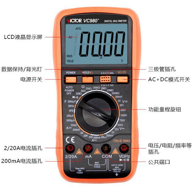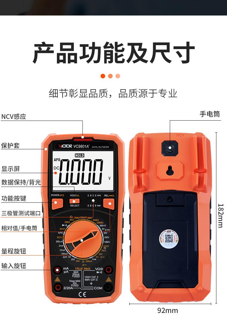 Compre Multímetro digital da série VICTOR Victory VC9801 de alta precisão True RMS de quatro bits de medição de meia indutância no atacado no Joom.pro