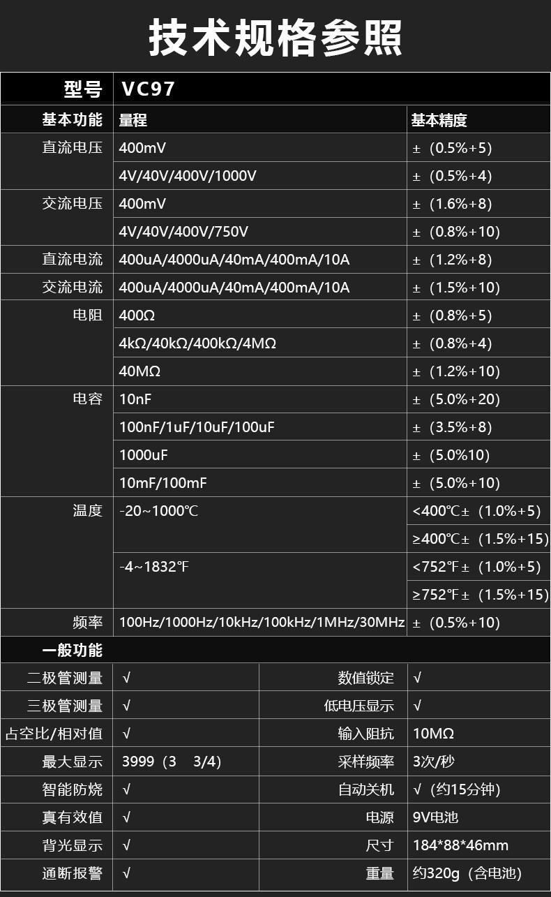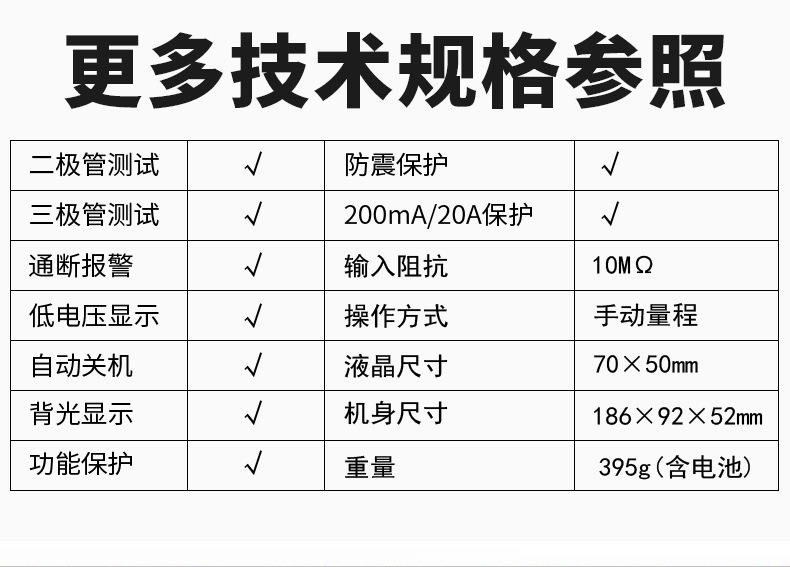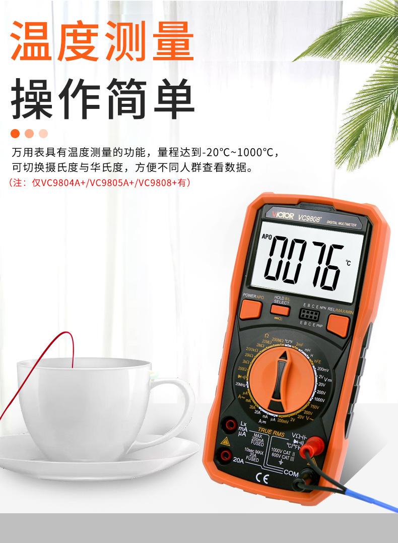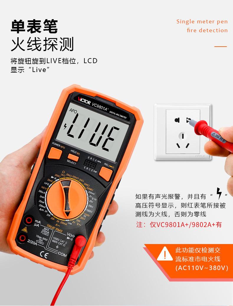 Vc9801a+ (basic type), Vc9802a+ (live line judgment), Vc9803a+ (led test), Vc9804a+ (temperature test), Vc9805...