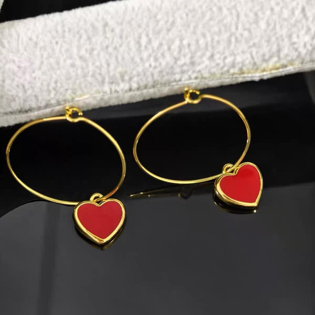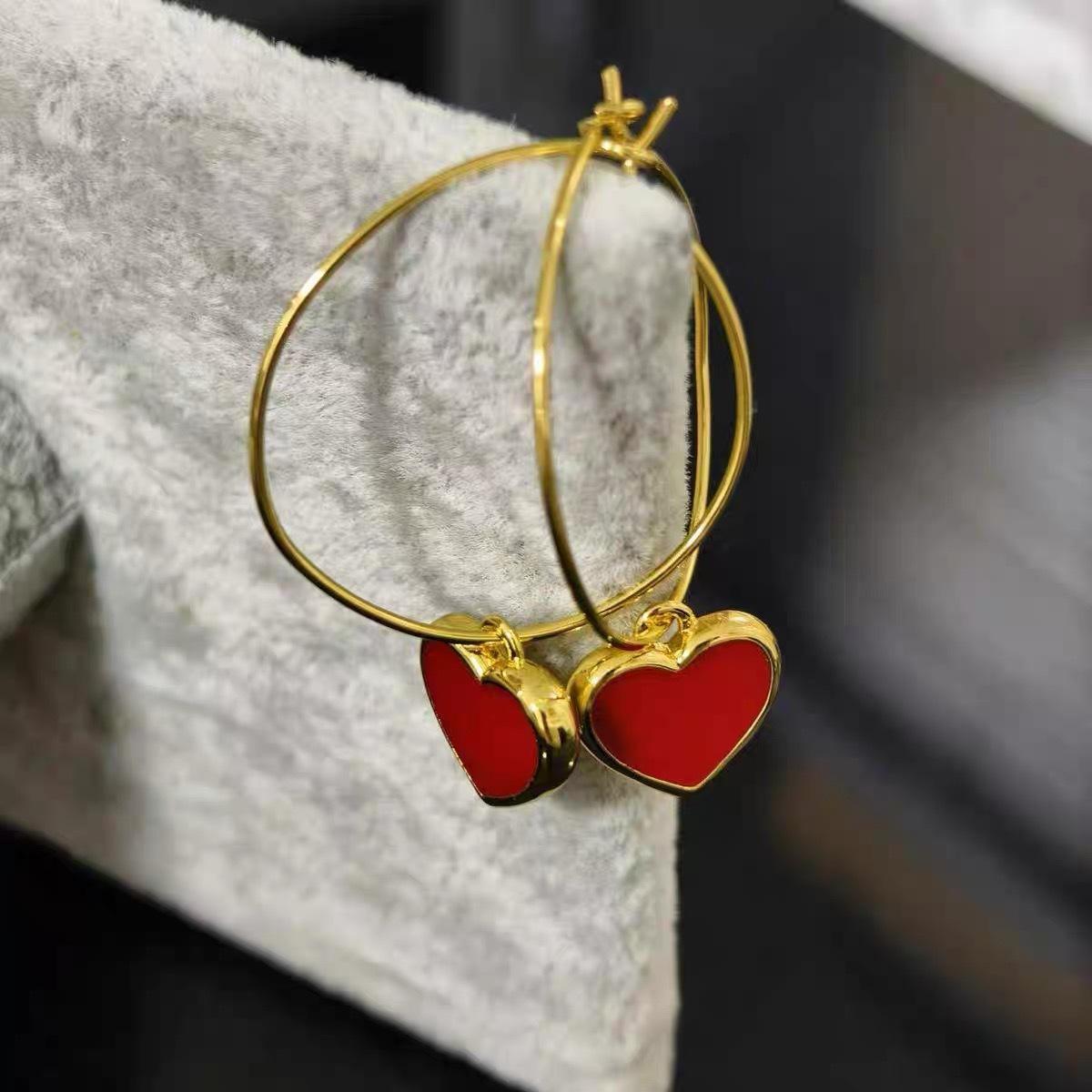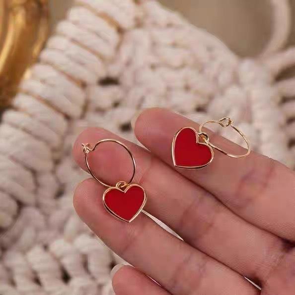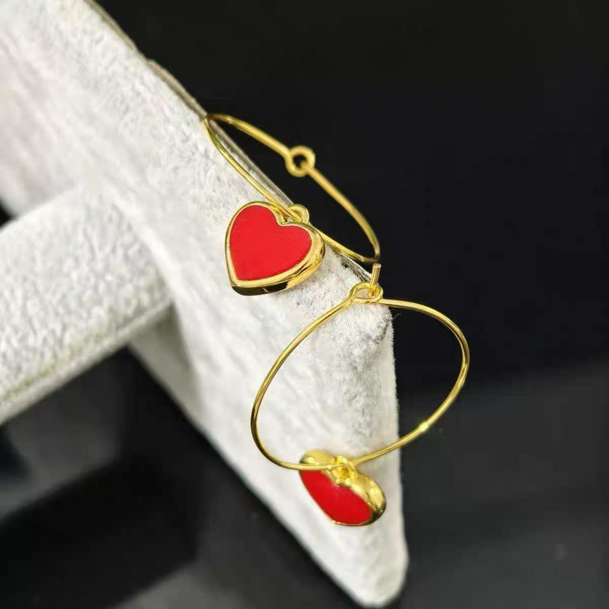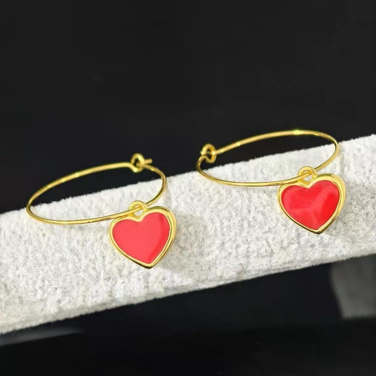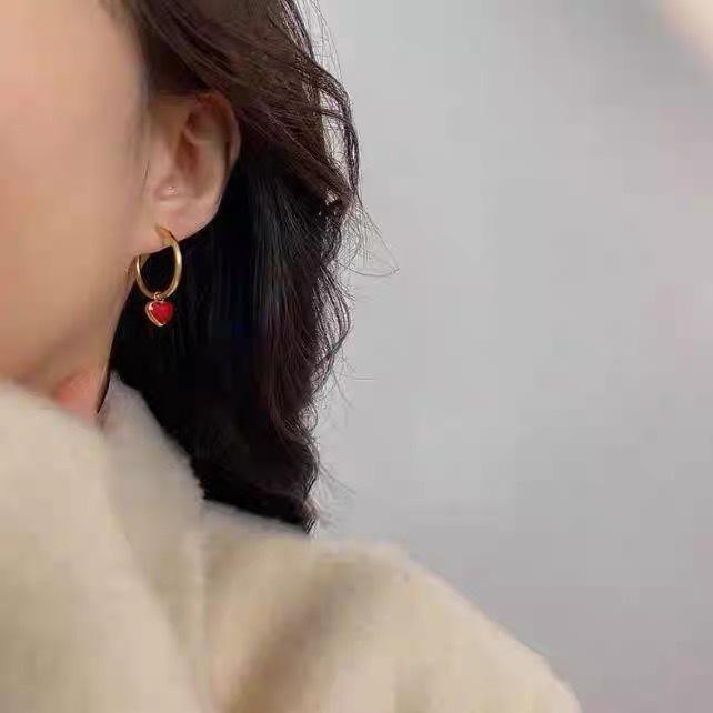 Brincos de Coração Retrô para Mulheres Brincos Simples Vermelhos Populares Estilo K Prata S925 Agulha de Orelha Brincos Doces Joias