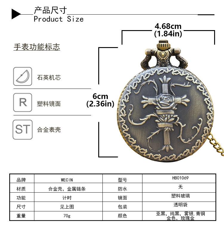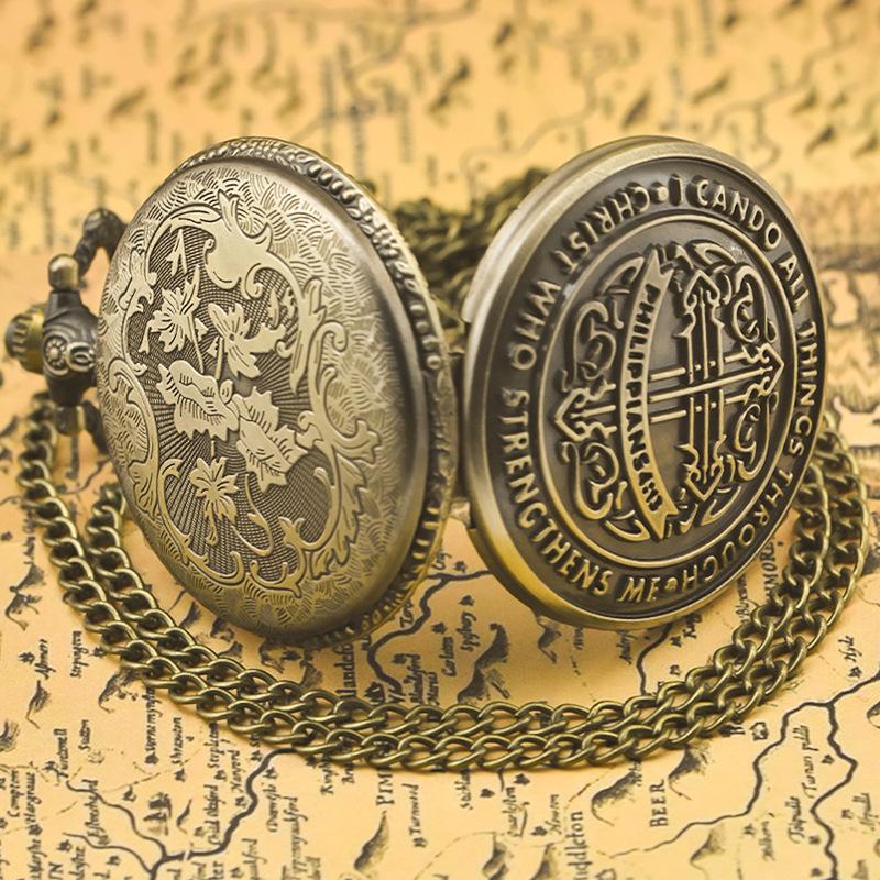 Relógio de bolso de bronze vintage com padrão cruzado, relógio de bolso de quartzo com flip de celebridade, personalidade, presente de feriado simples, atacado