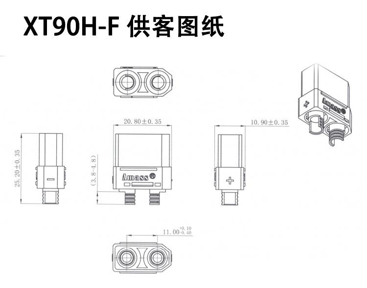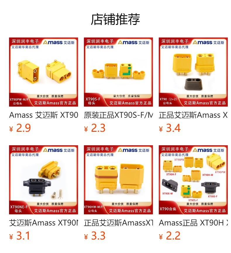 Amass Original Xt90H Plugue Encapado Banhado a Ouro Preto Modelo Uav Aeronave Plugue de Bateria de Lítio