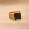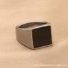 Joias europeias e americanas anel de aço titânio vidro preto retrô moderno masculino punk aço inoxidável gema preta anel quadrado 280102