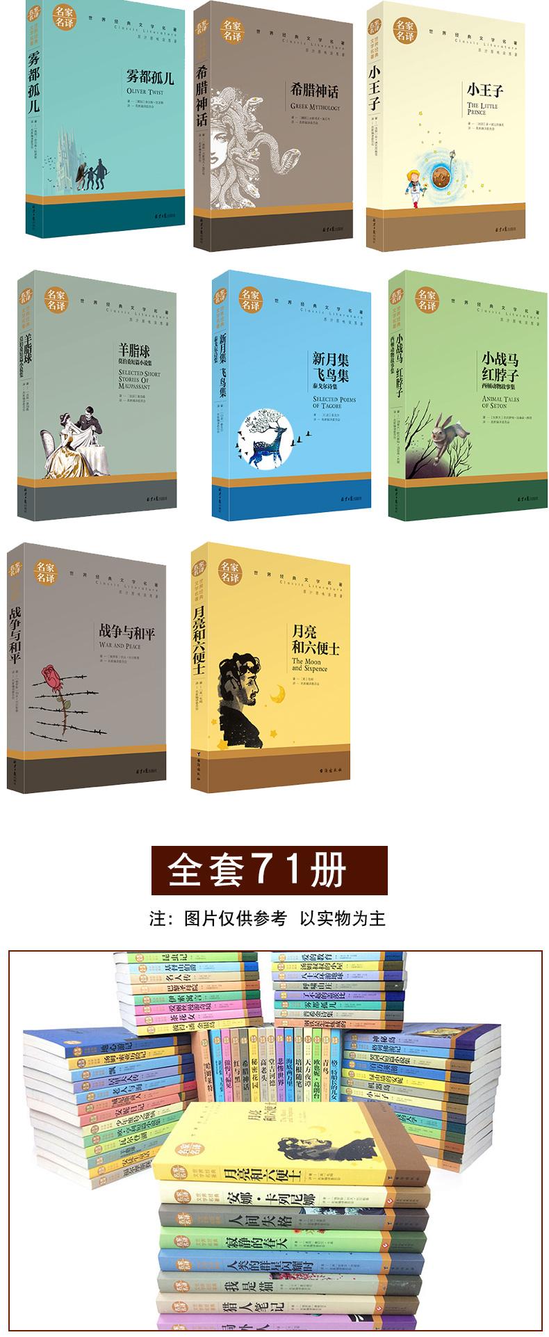 Conjunto Atacado de 71 Livros Clássicos de Leitura Extracurricular para Alunos do Ensino Fundamental e Médio, Apresentando Romances Literários Famosos Mundialmente e Suas Traduções Famosas