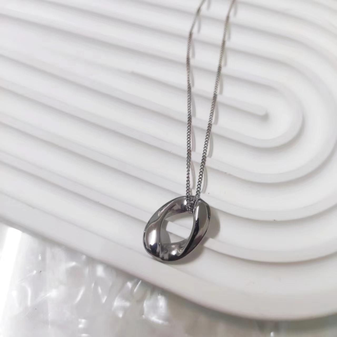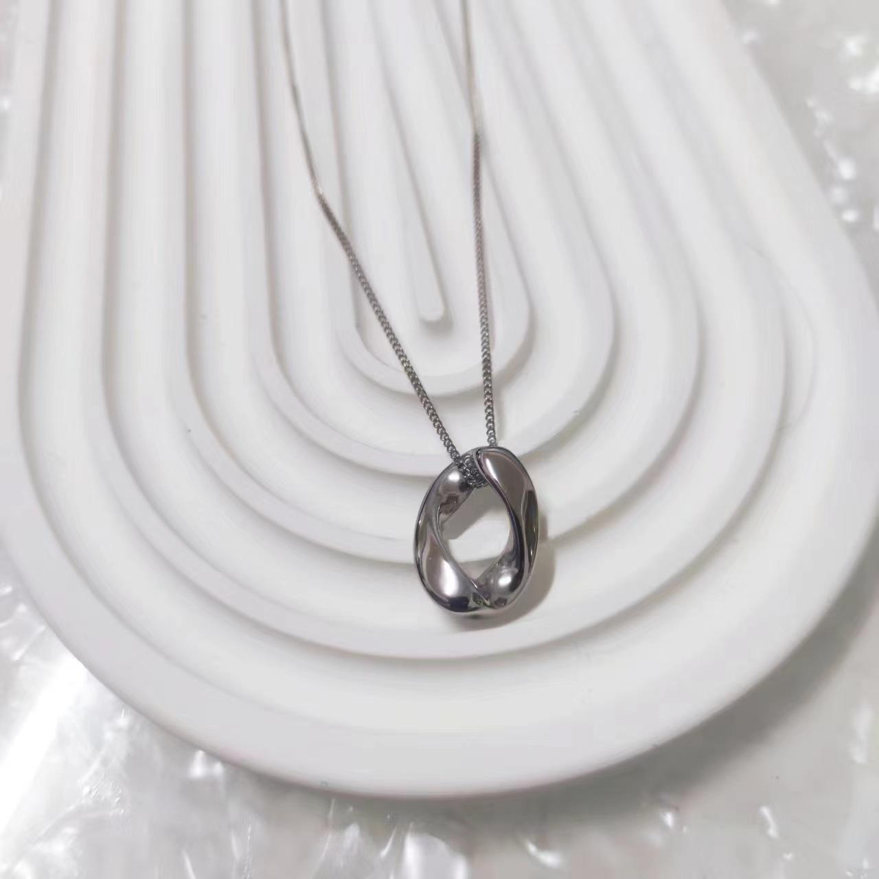 Pingente Oco de Design Nicho em Aço Titânio Colar de Alta Qualidade Linha Geométrica Torcida Moda Menina Fofa Corrente para Clavícula Luxo Leve