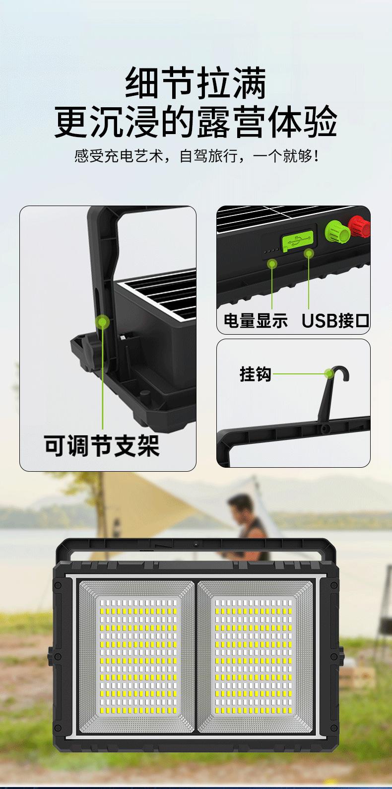 Novo holofote solar transfronteiriço, iluminação externa, à prova d'água, forte, luz de jardim superbrilhante