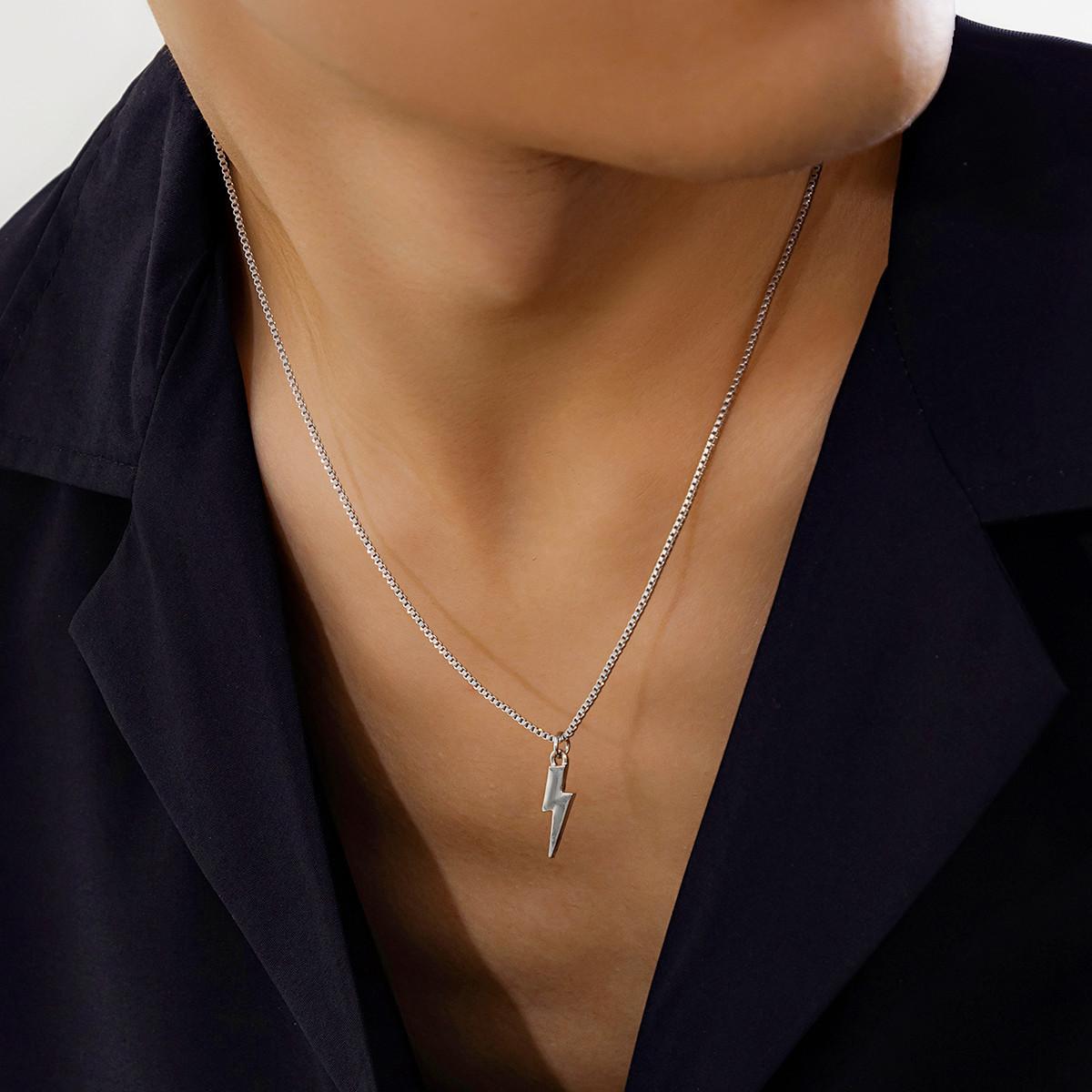 Jóias transfronteiriças europeias e americanas caixa masculina Chain Lightning Necklace Colar simples nicho de alta qualidade sweater cadeia