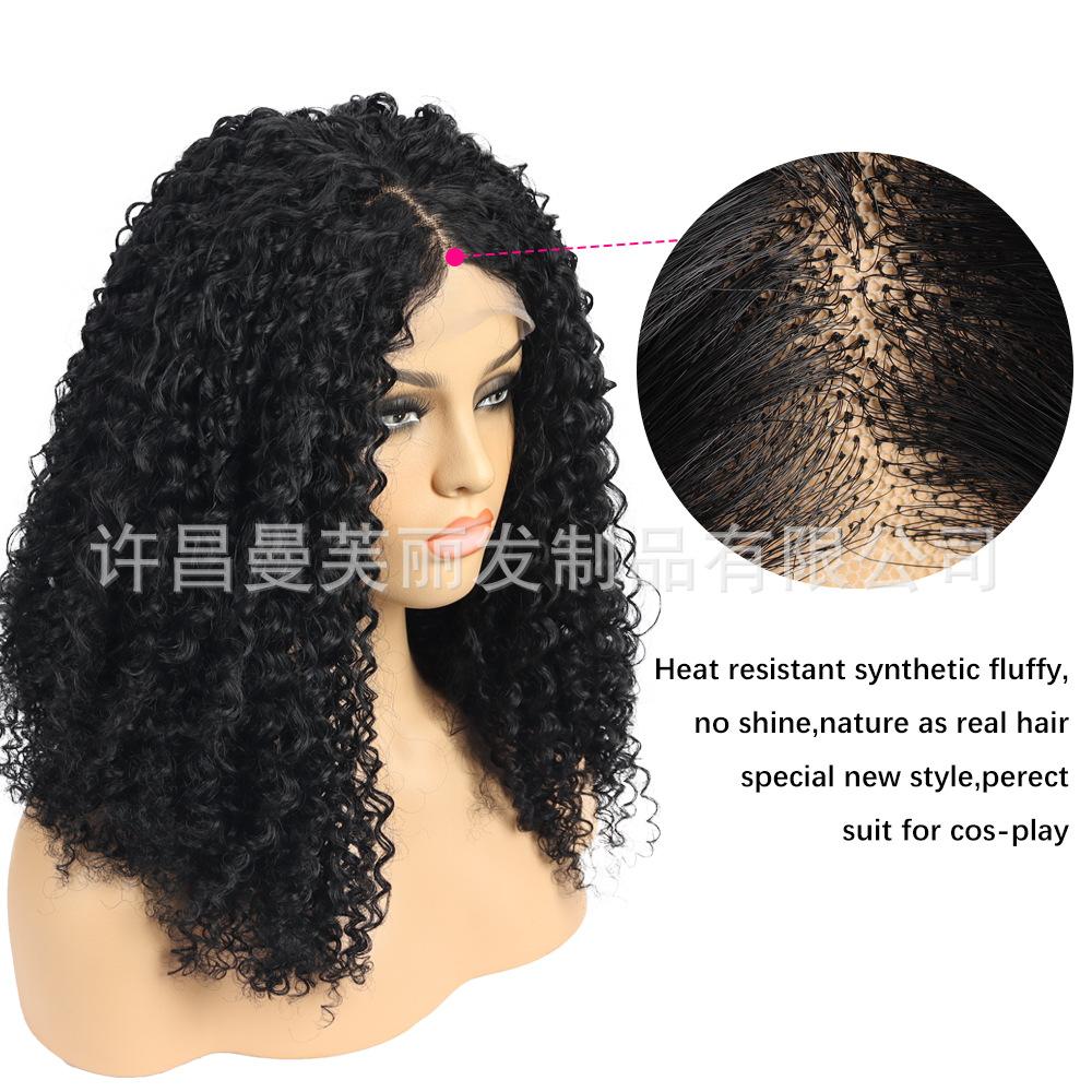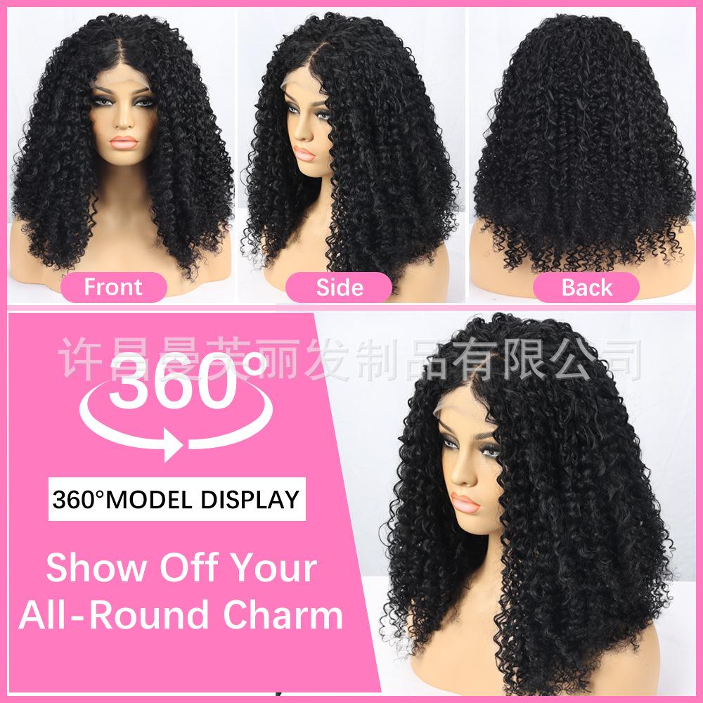 Xuchang transfronteiriço europeu e americano peruca dianteira do laço preto grande onda longa cabelo encaracolado fibra química chapelaria peruca do laço atacado