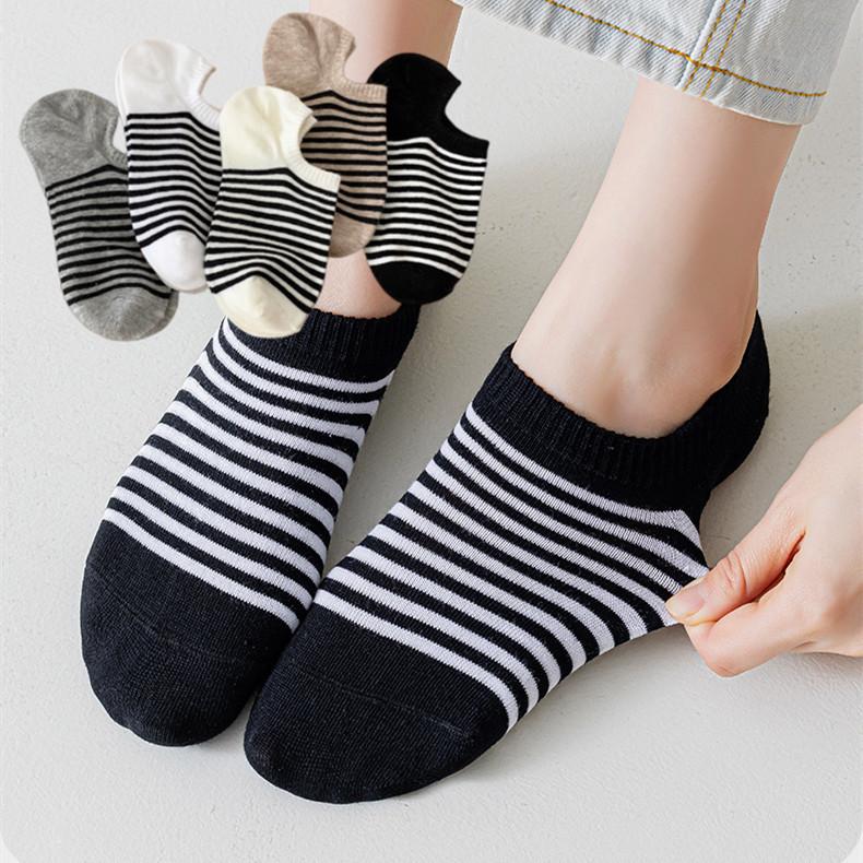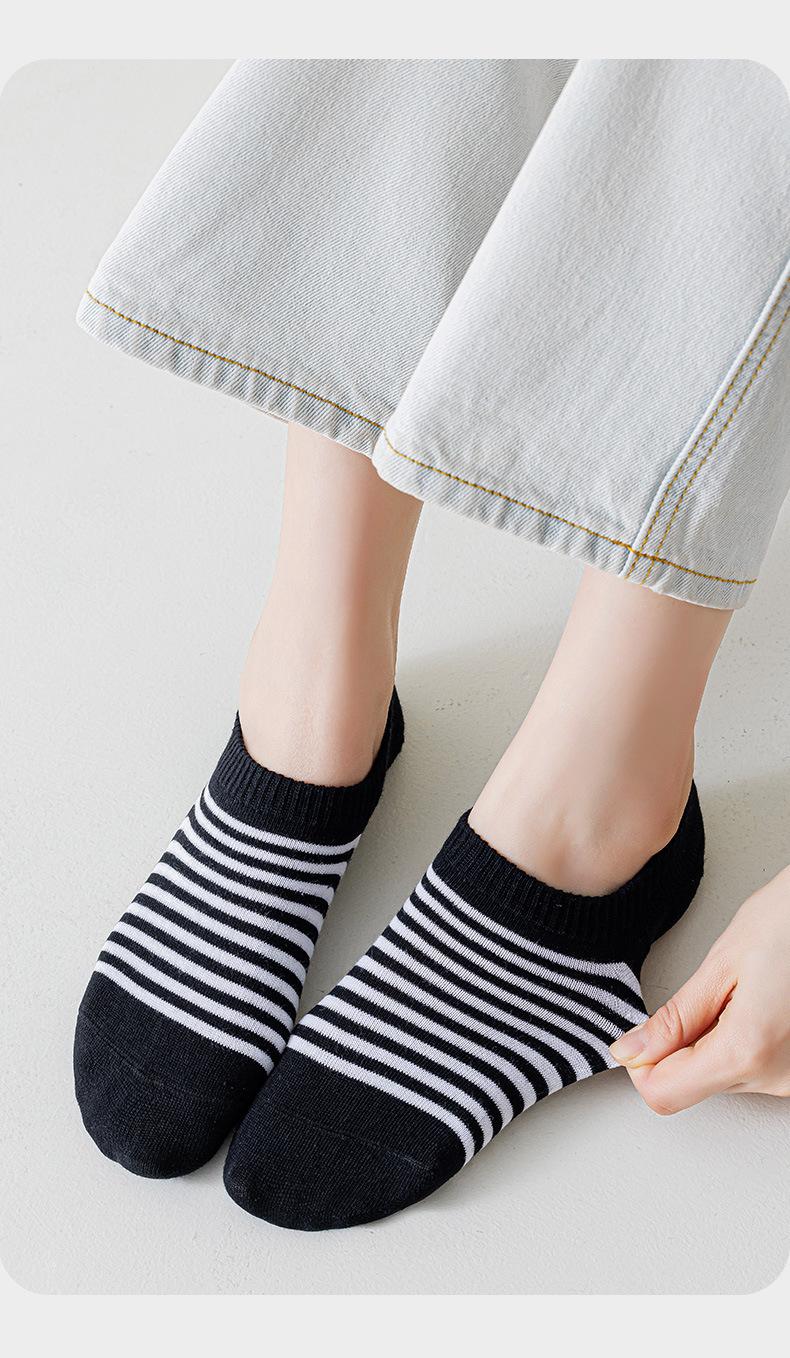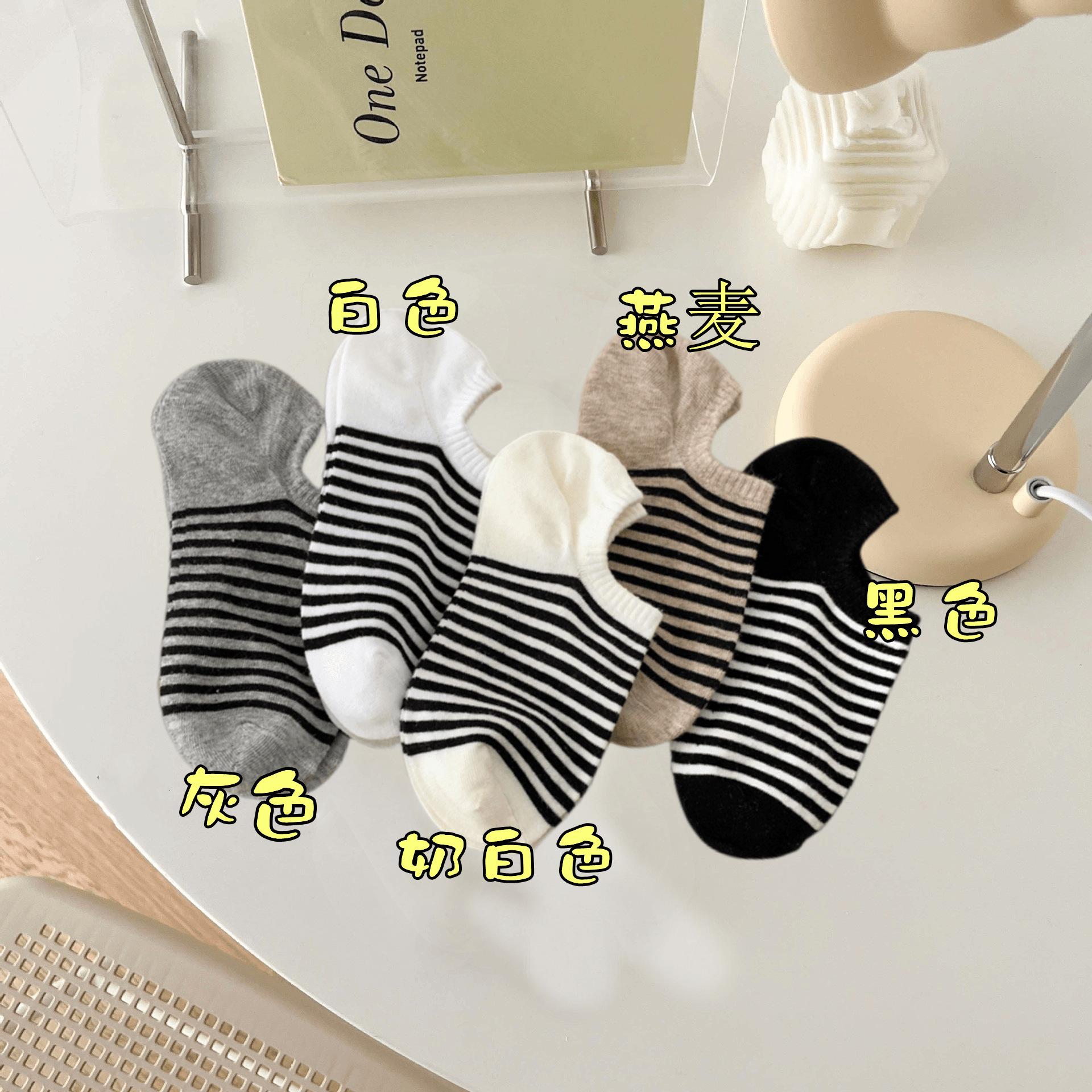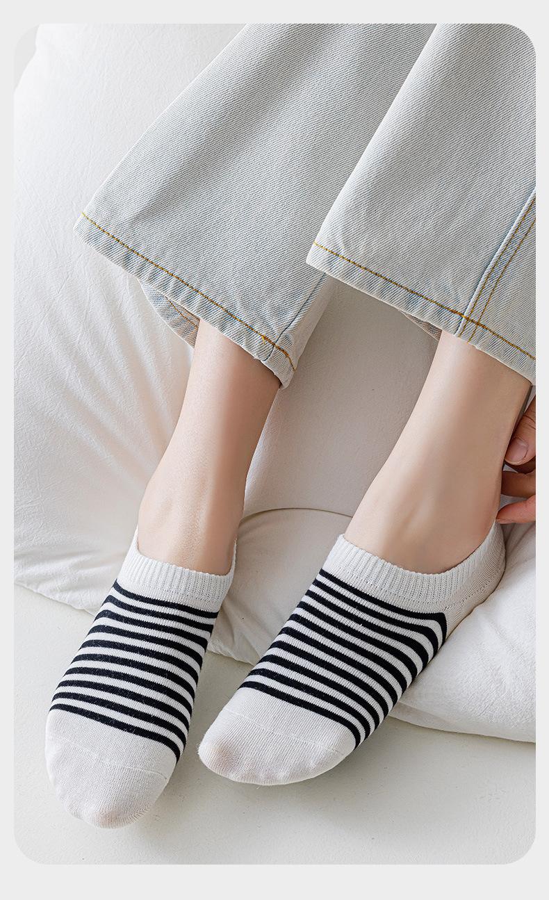 Meias Meias Curtas Femininas Primavera e Verão Listradas Vintage Meias Invisíveis Estilo Japonês Absorvente de Suor Antiderrapante Calcanhar Anti-queda Boca Rasa Meias de Algodão Femininas Bonitas