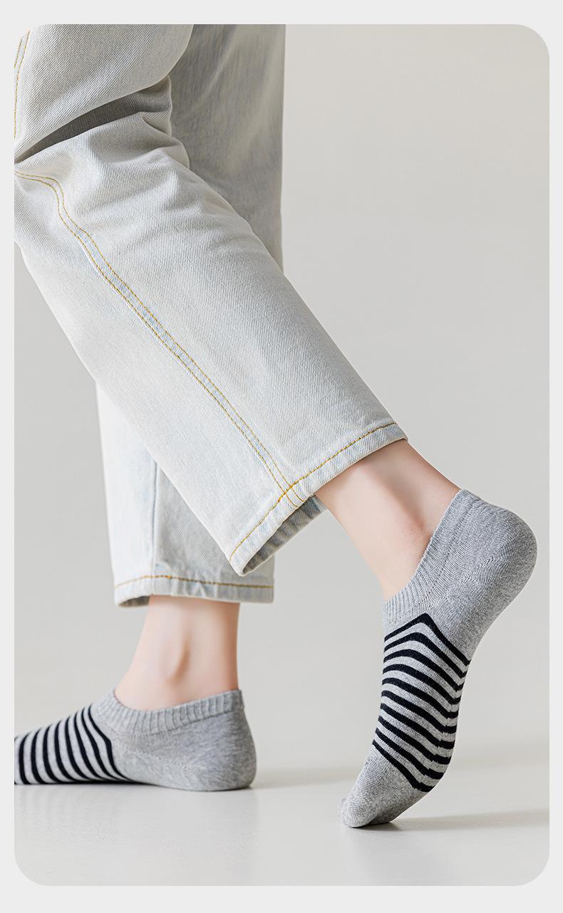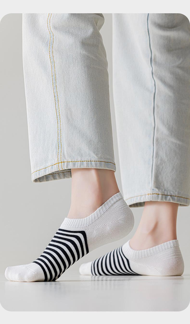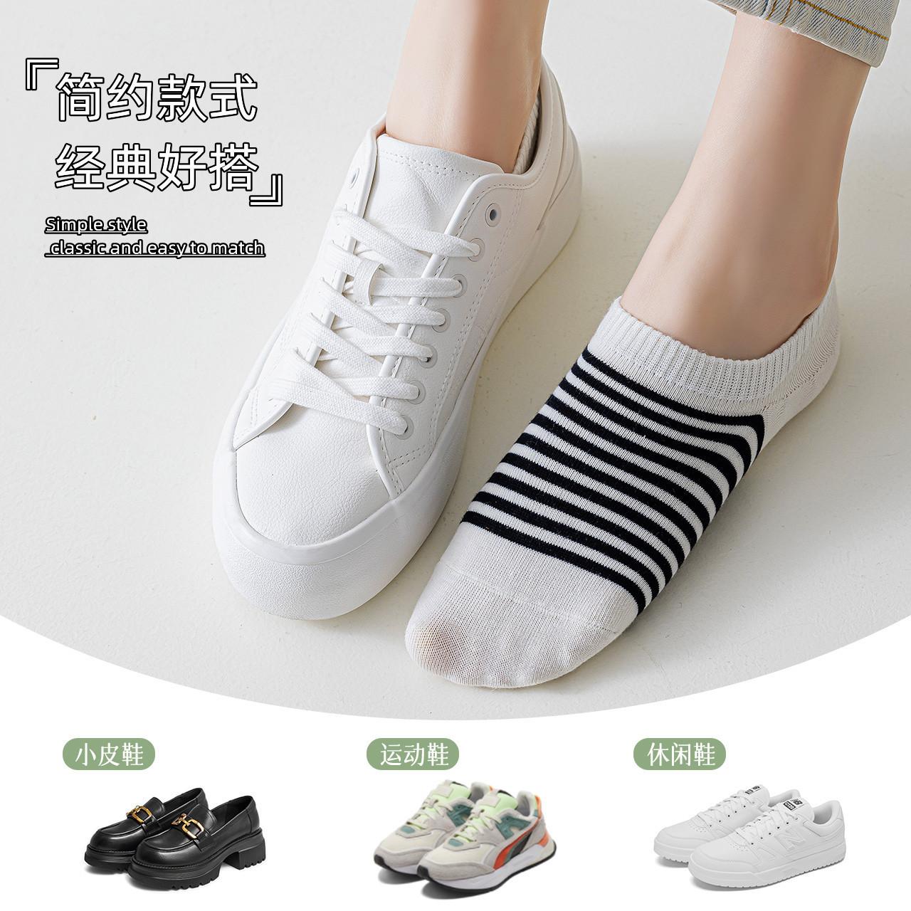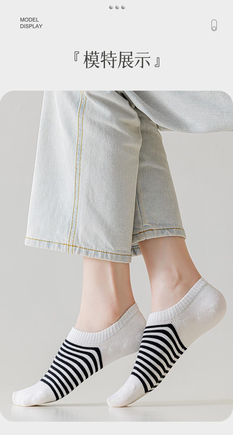 Meias Meias Curtas Femininas Primavera e Verão Listradas Vintage Meias Invisíveis Estilo Japonês Absorvente de Suor Antiderrapante Calcanhar Anti-queda Boca Rasa Meias de Algodão Femininas Bonitas