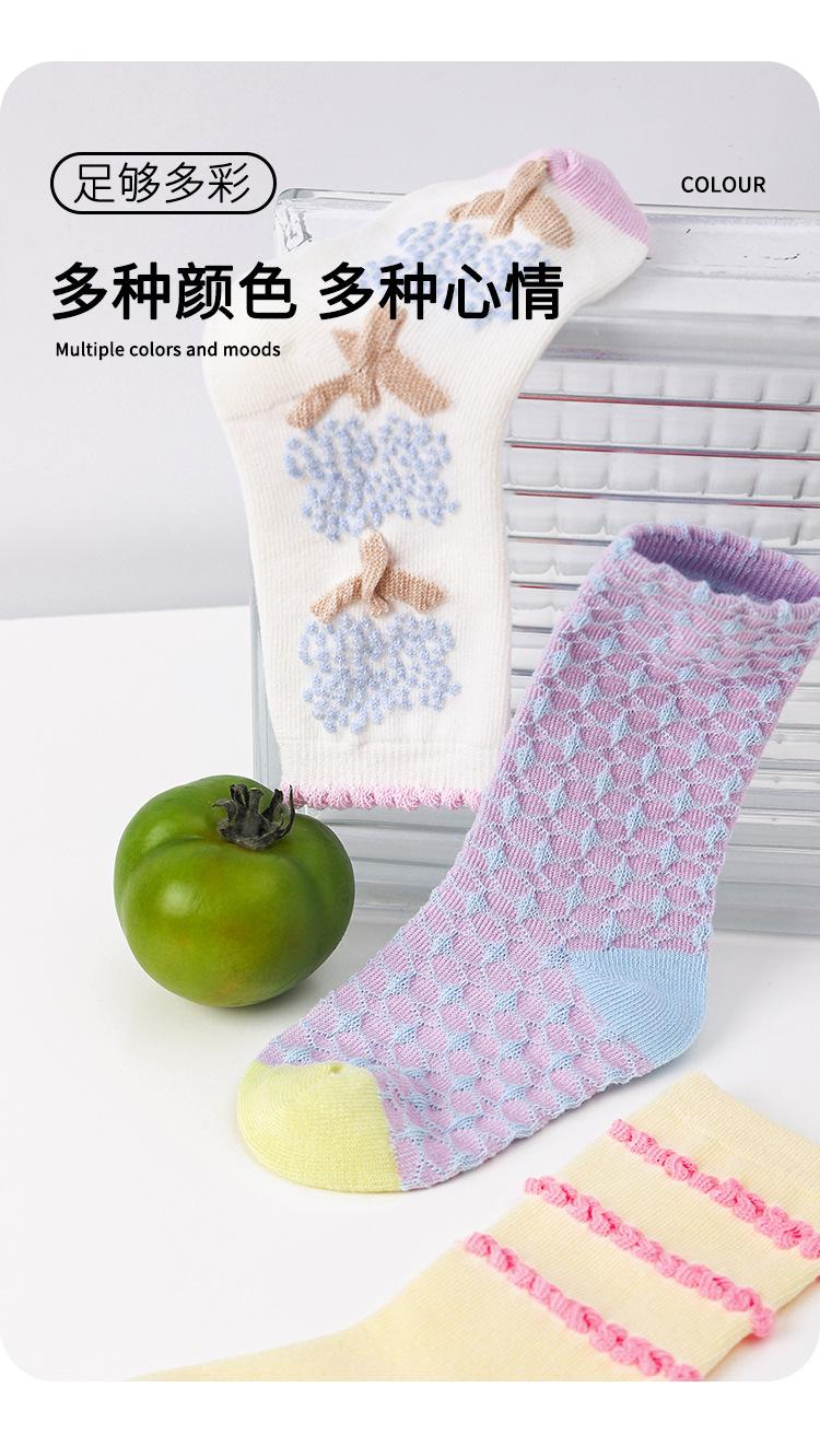 Meias infantis 2024 primavera nova flor em relevo bebê meias de panturrilha penteado algodão rendas princesa meias femininas