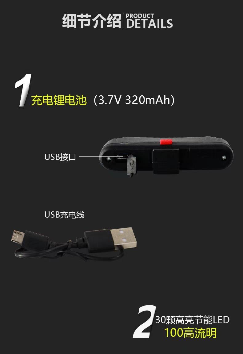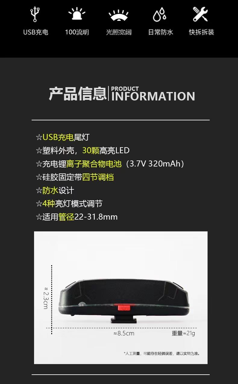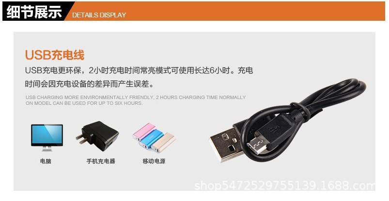 Brilho de carregamento USB 100 lúmens adequado para instalação de diâmetro de tubo 22-31,8 mm