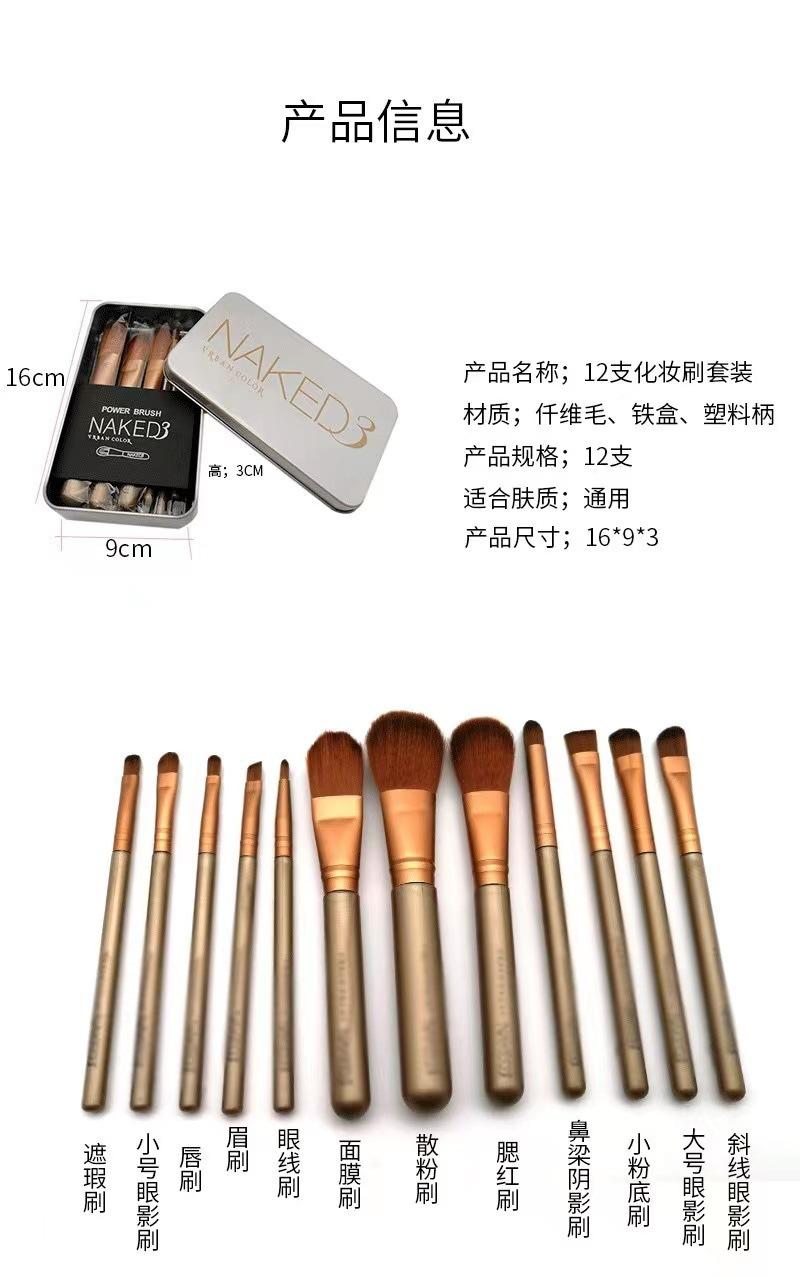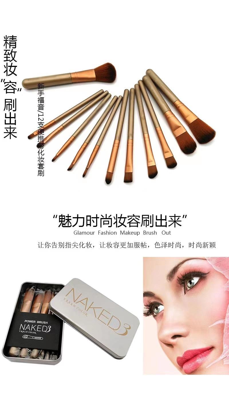 Pincéis de Maquiagem Maked3 Mais Vendidos Transfronteiriços 12 Peças com Caixa de Ferro Ferramentas de Beleza Portáteis com Logotipo Drop Shipping