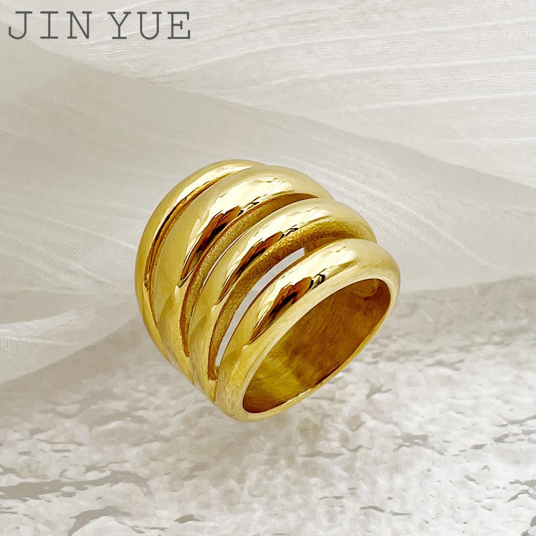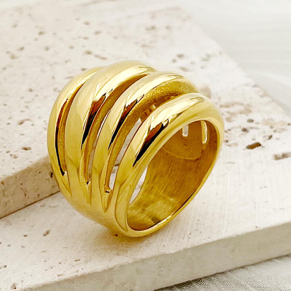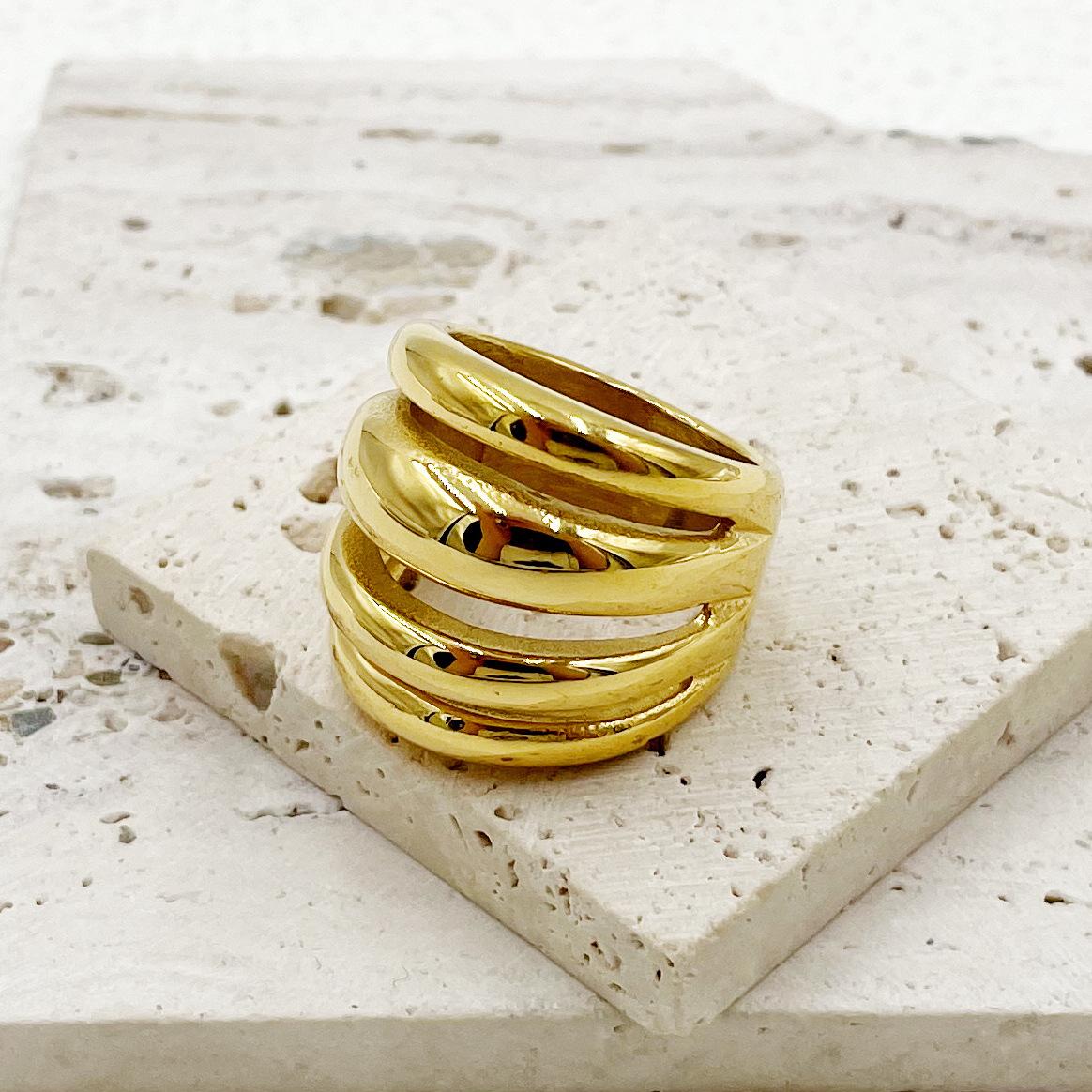 Anel Grosso de Aço Inoxidável Estilo Retro Old Money com Design de Anel Multicamadas, Joia da Moda Banhada a Ouro para Homens e Mulheres Atacado