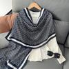 2023 Cachecol Longo de Algodão e Linho com Estampa de Letras de Dupla Face Feminino Outono e Inverno Quente Moda Tamanho Grande 180 Cachecol de Seda