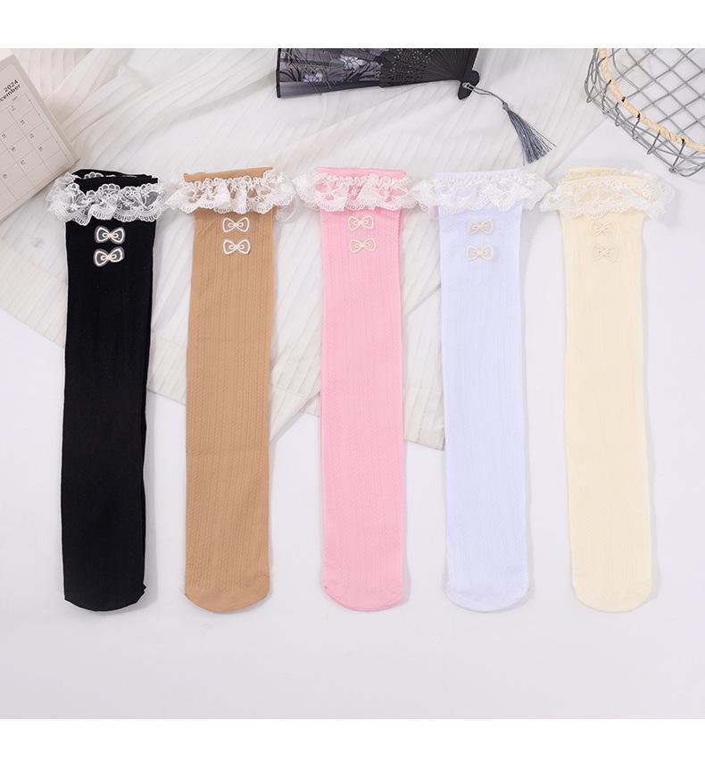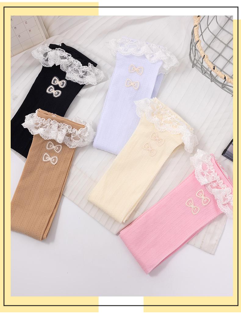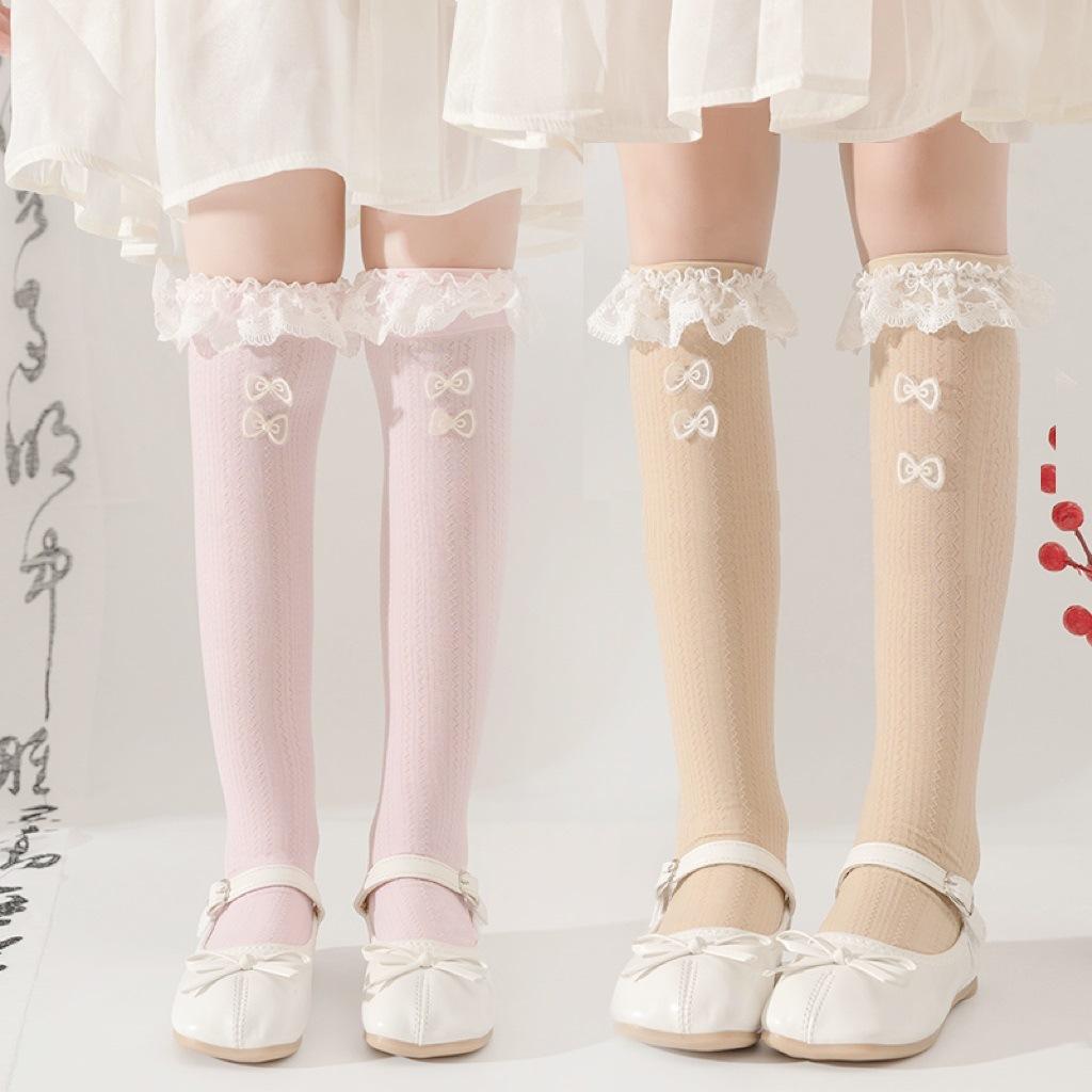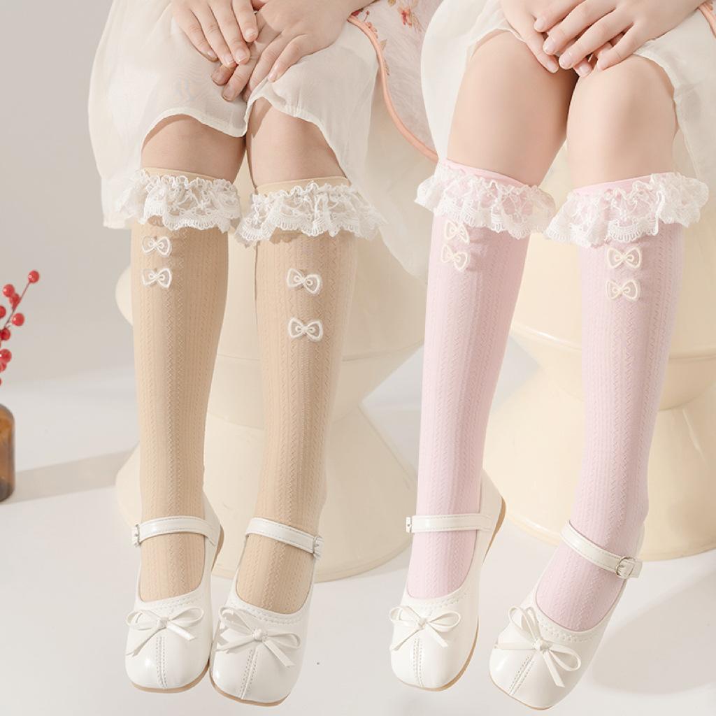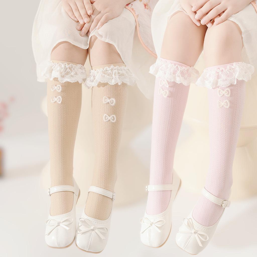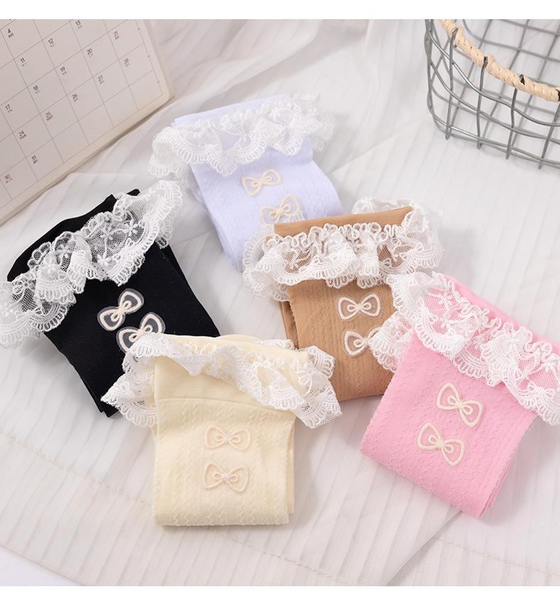 Novas meias infantis primavera e outono meninas grandes meias infantis sem meias tubo de salto Coreia do Sul rendas bebê meias de algodão atacado