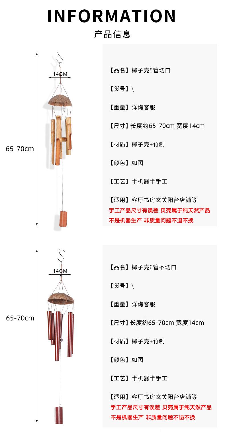 Criativo Retro Chinês Casca De Coco Bambu Incisão Sino De Vento Porta De Casa Sino Janela Pendurado Artesanato Área Cênica Sino De Vento