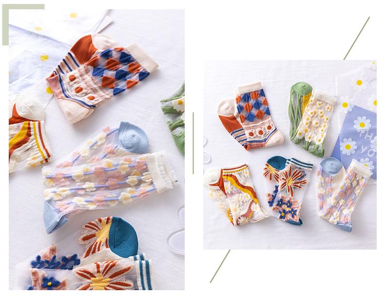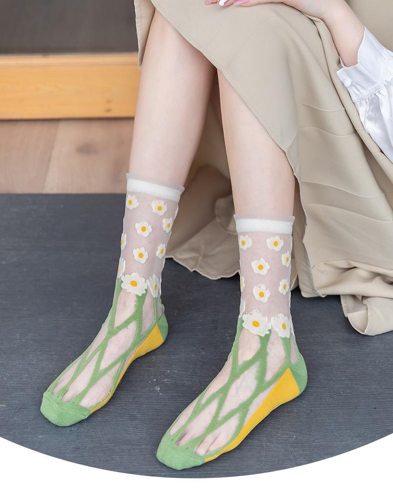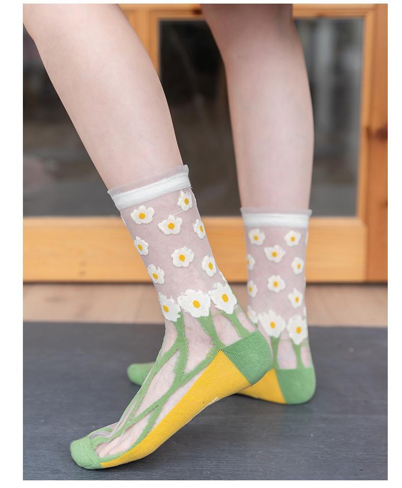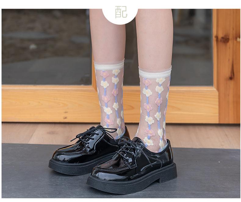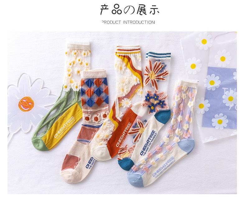 Meias de Seda Cartão Meias Femininas Novo Verão Transparentes Vazadas Meias Brancas Laço Morango Meias de Cristal Renda Moda Cano Alto