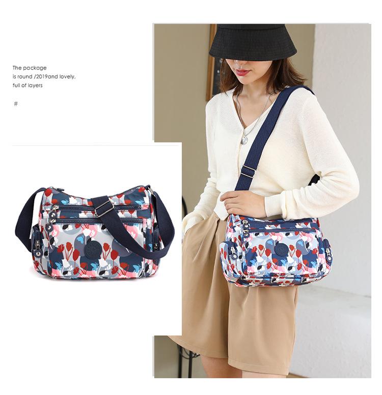 Bolsa de viagem feminina transfronteiriça, nova moda, bolsa de ombro feminina, estampada, de nylon, bolsa transversal, casual, grande capacidade