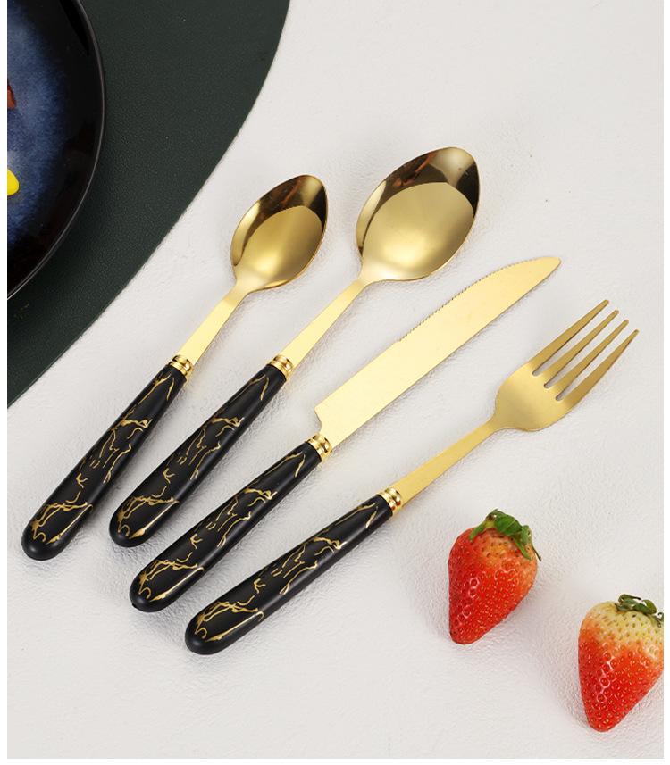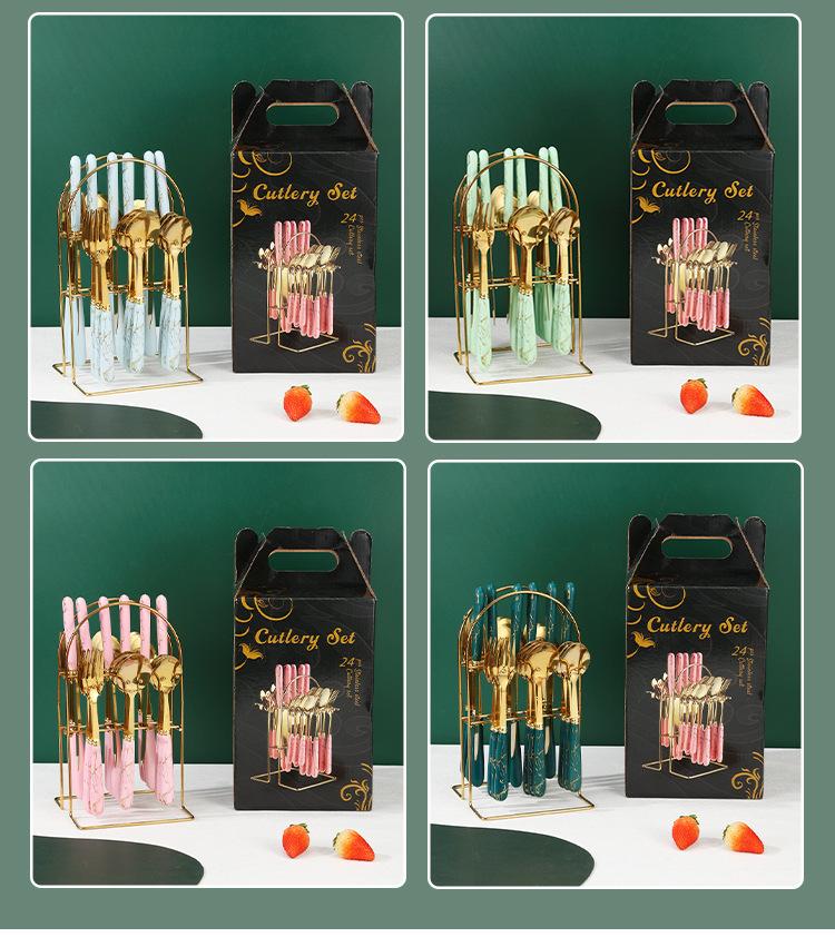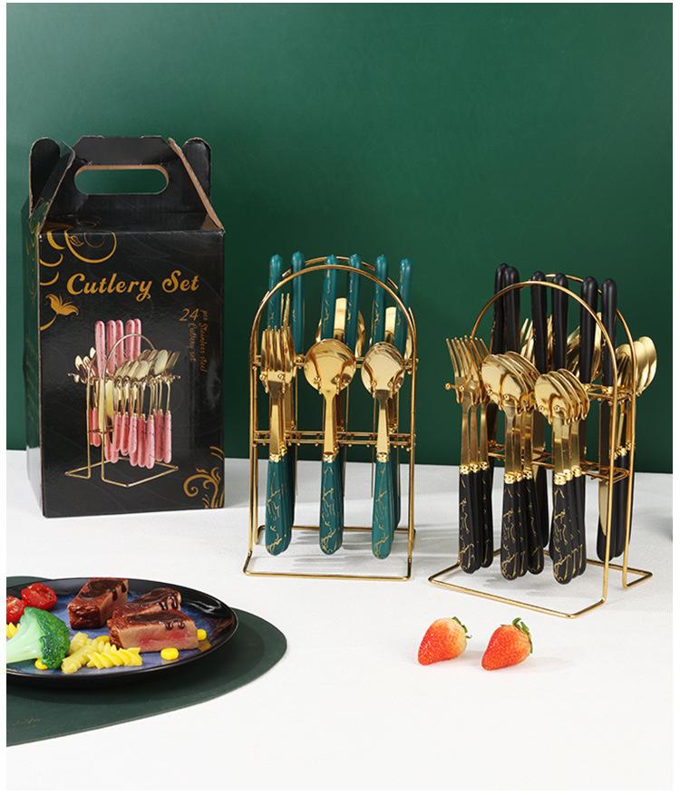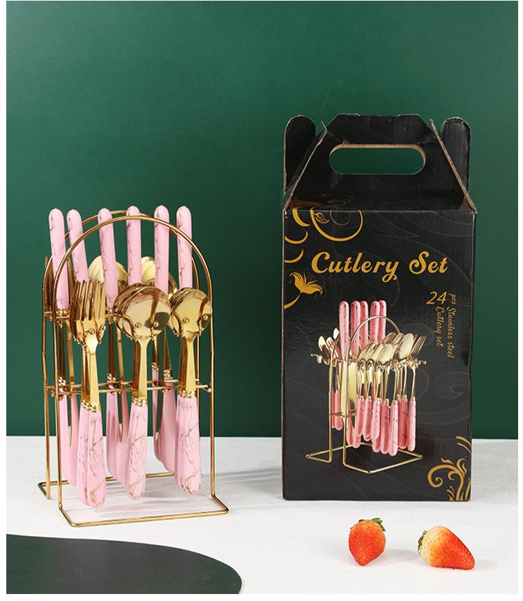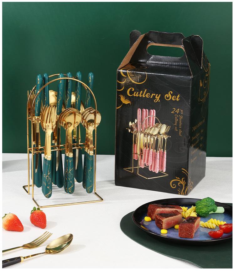 Talheres transfronteiriços da Amazon em aço inoxidável, 24 peças com padrão de mármore, conjunto de talheres de alta qualidade