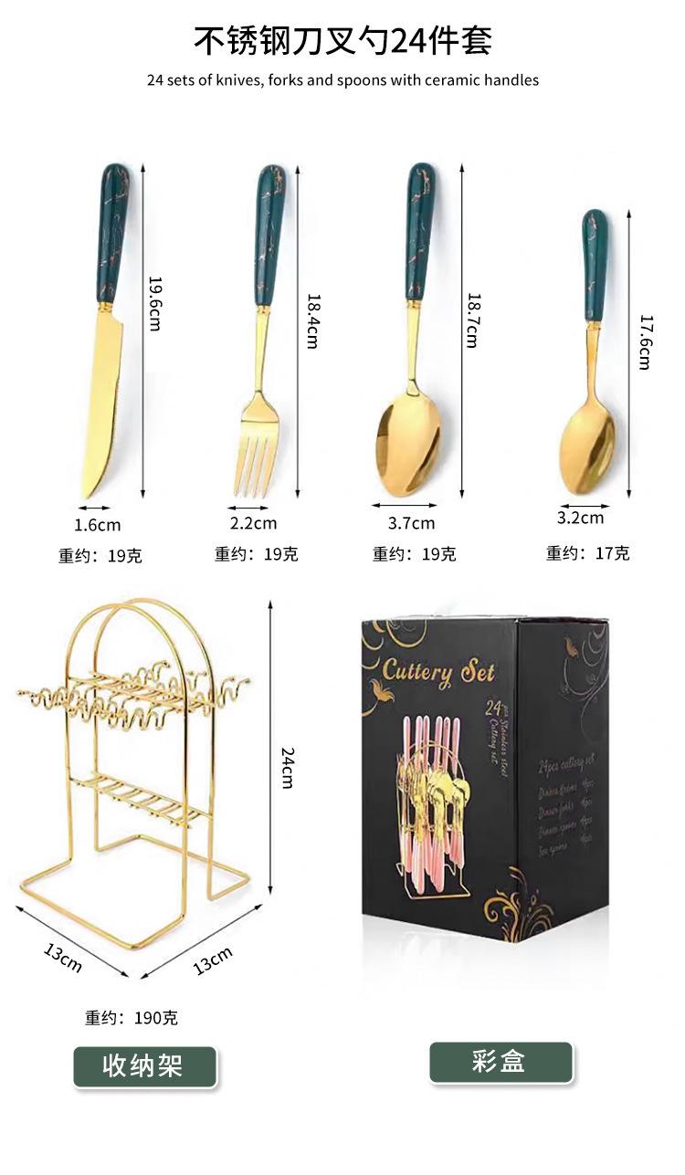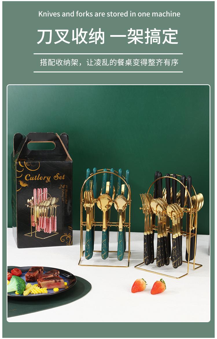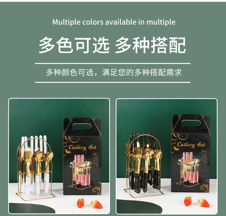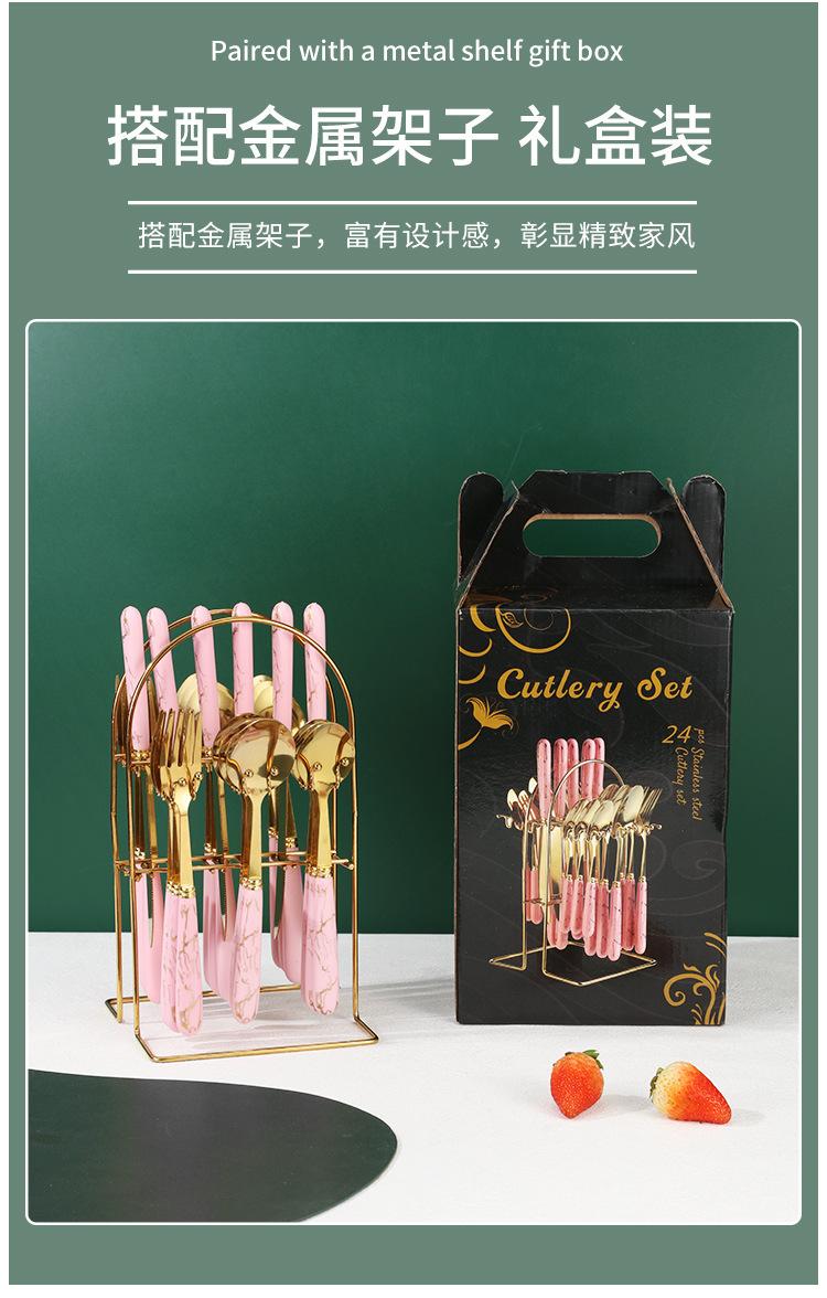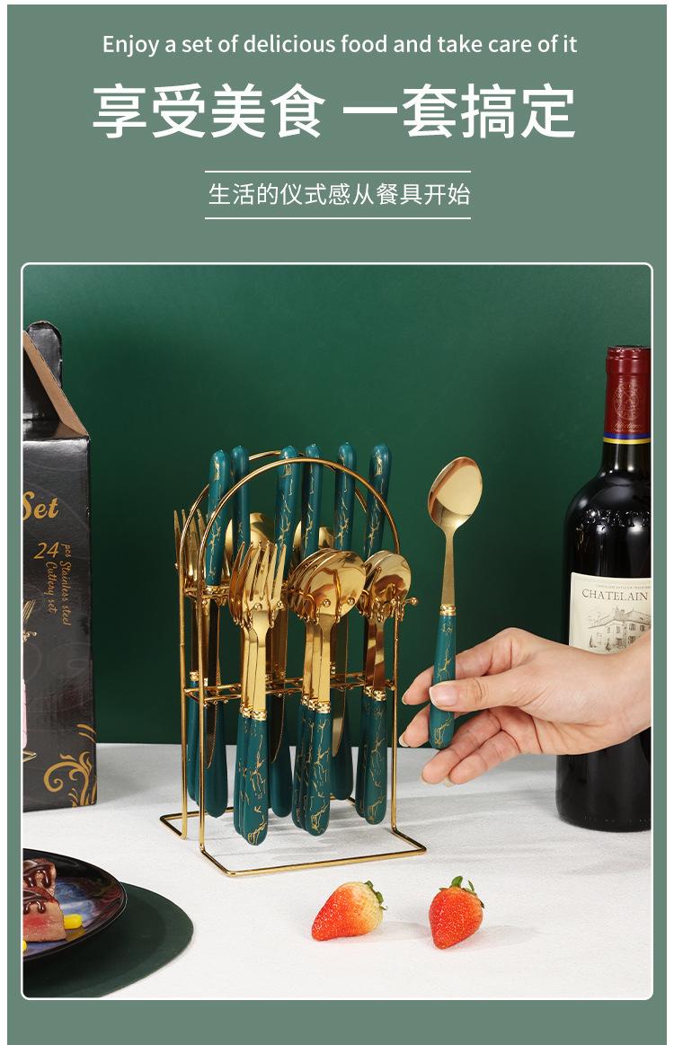 Talheres transfronteiriços da Amazon em aço inoxidável, 24 peças com padrão de mármore, conjunto de talheres de alta qualidade