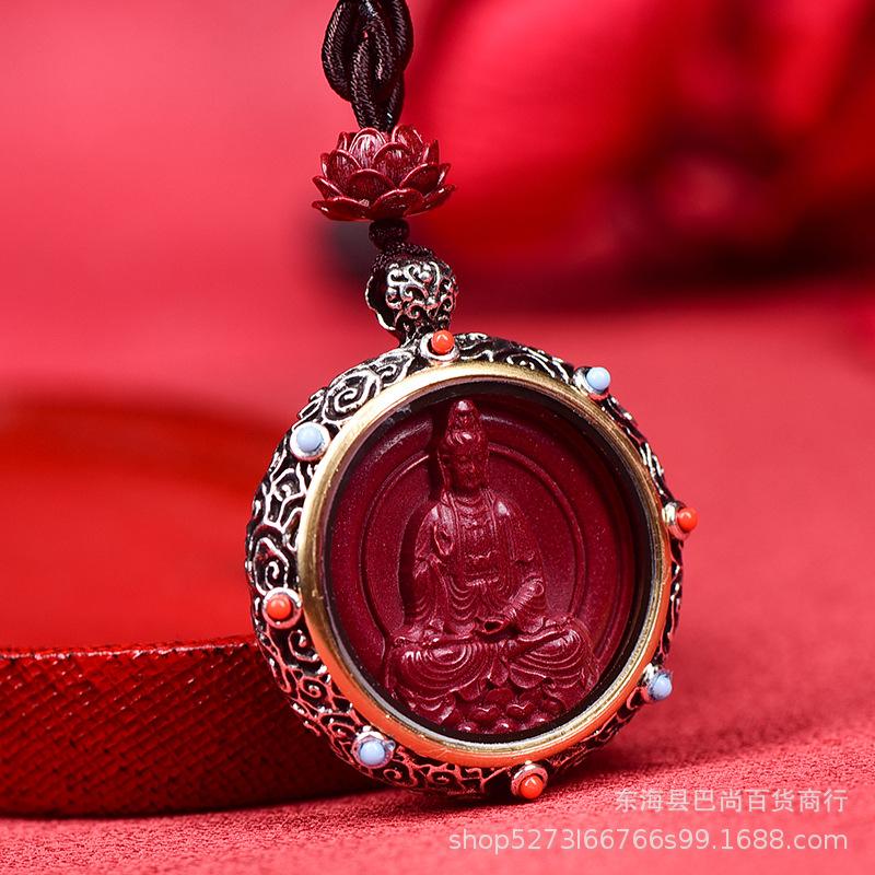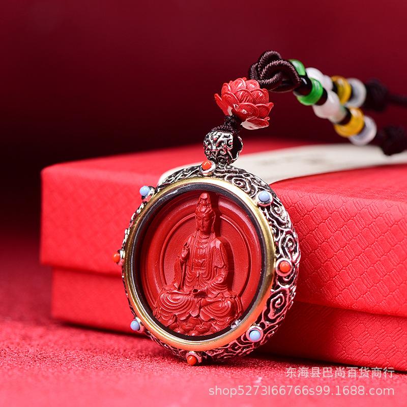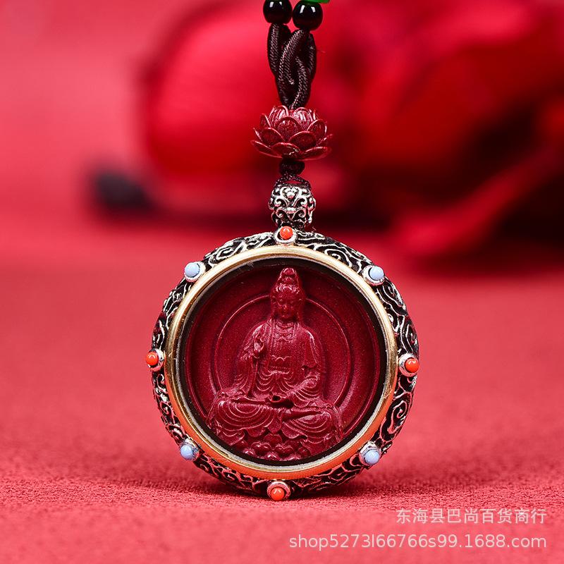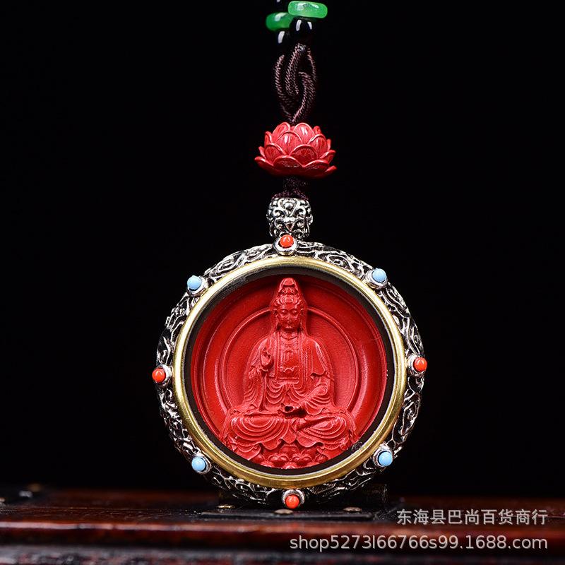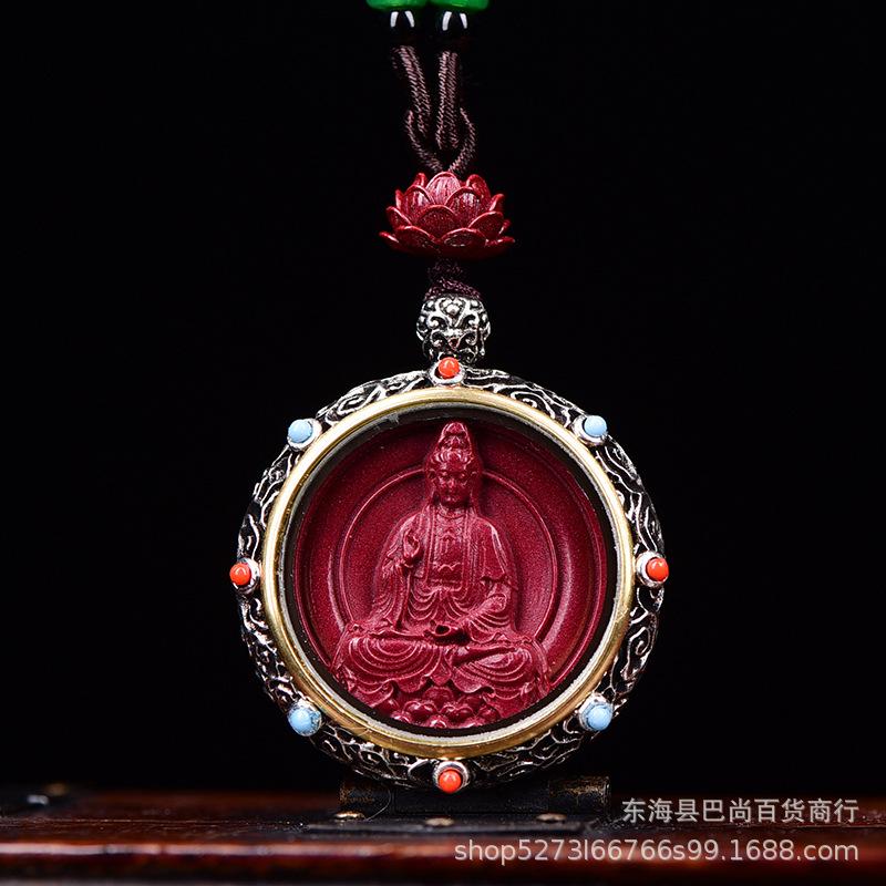 Atacado cinábrio Guanyin caixa pingente roxo ouro areia Guanyin thangka colar vermelho areia água voando areia Guanyin pingente