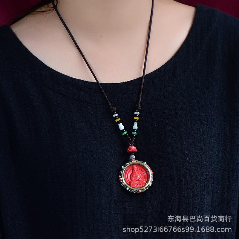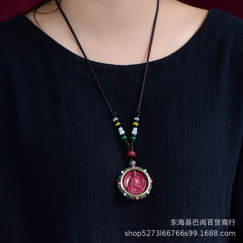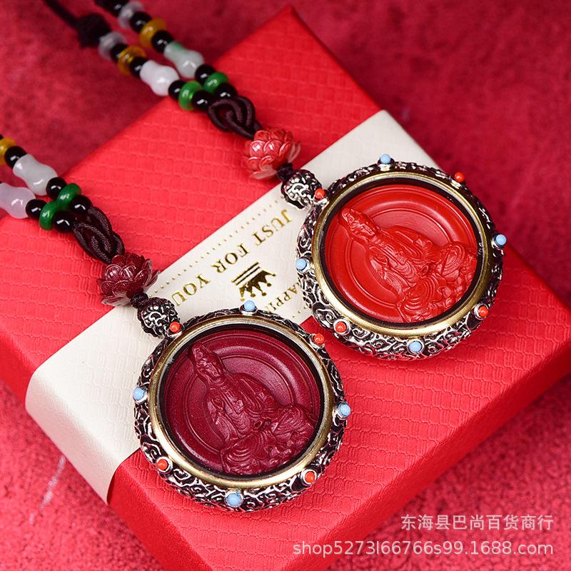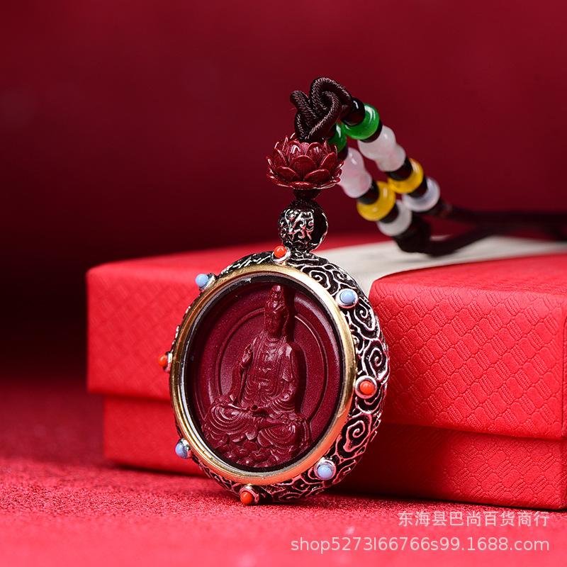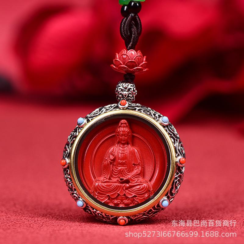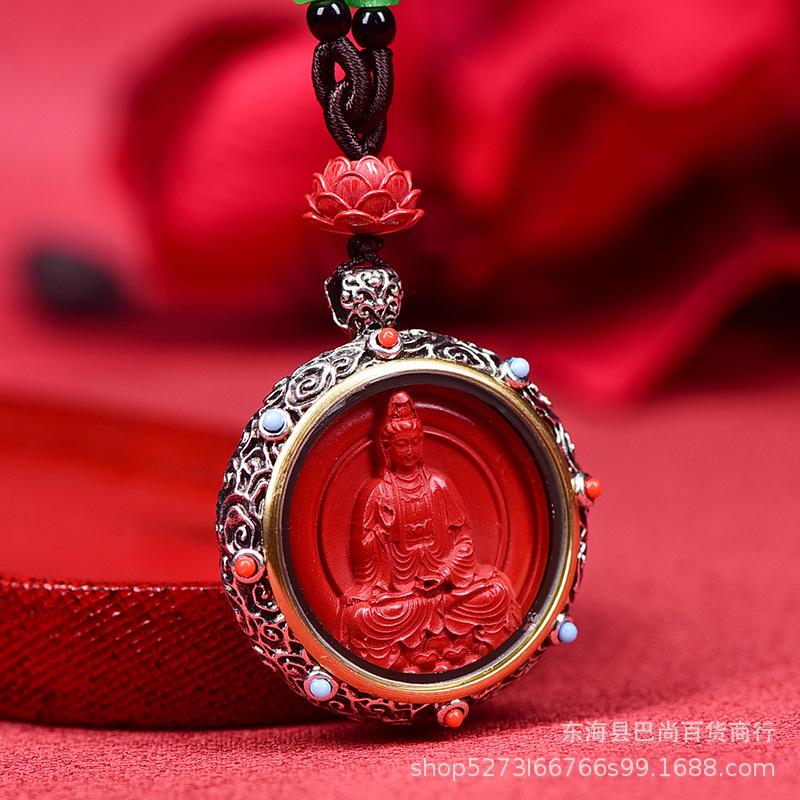 Atacado cinábrio Guanyin caixa pingente roxo ouro areia Guanyin thangka colar vermelho areia água voando areia Guanyin pingente