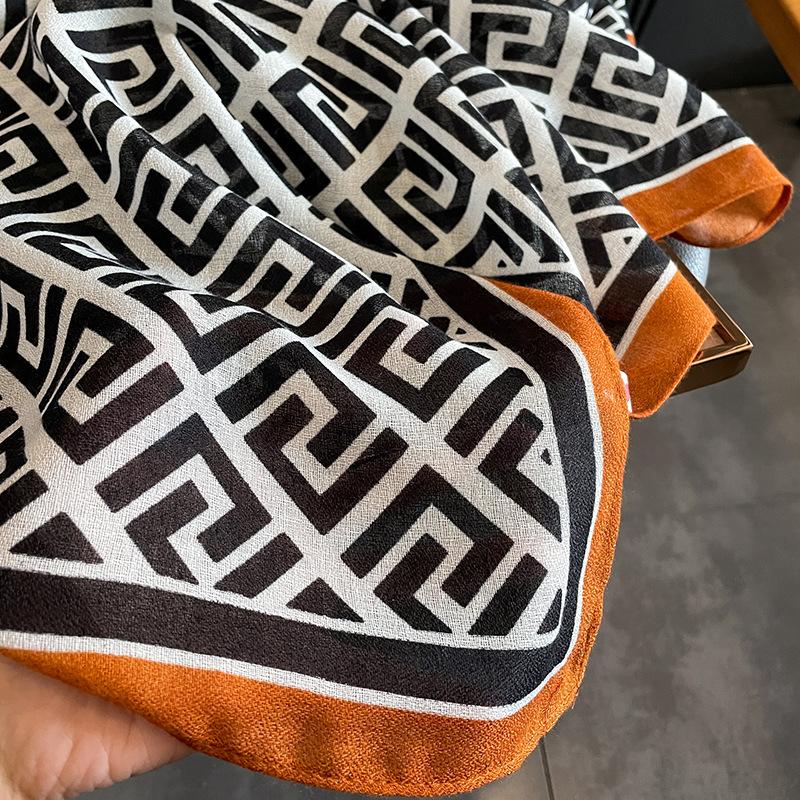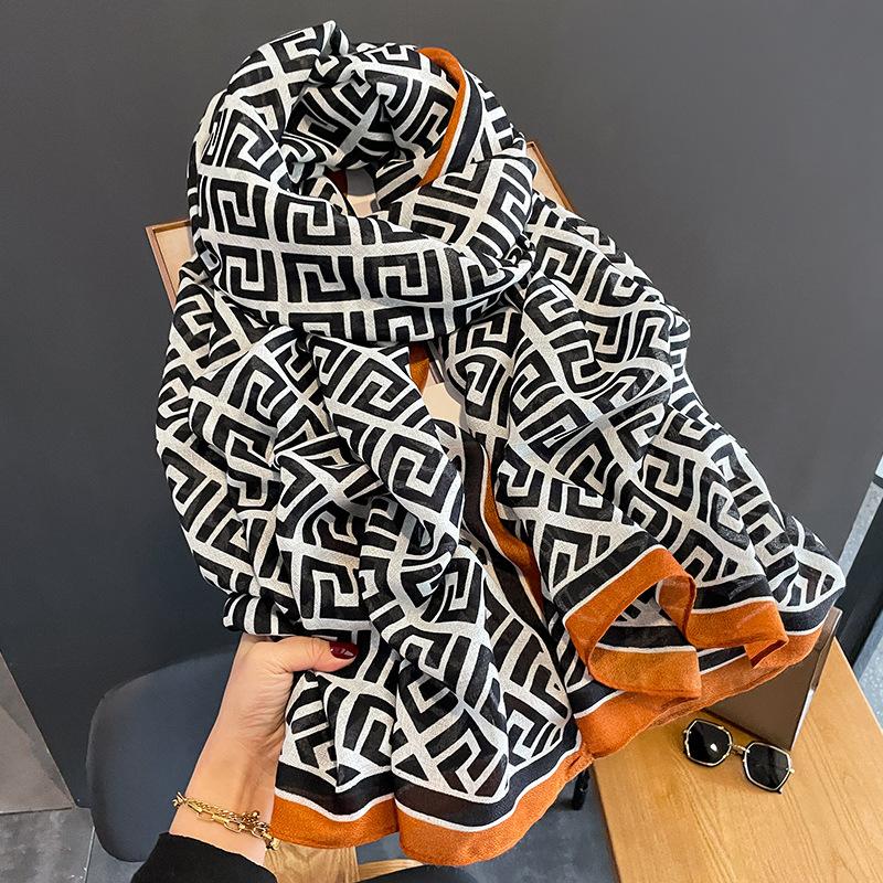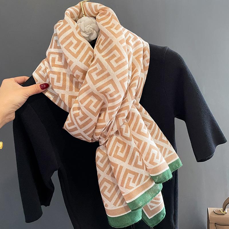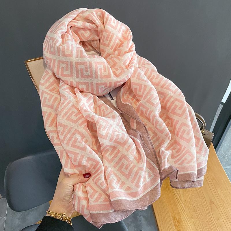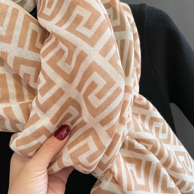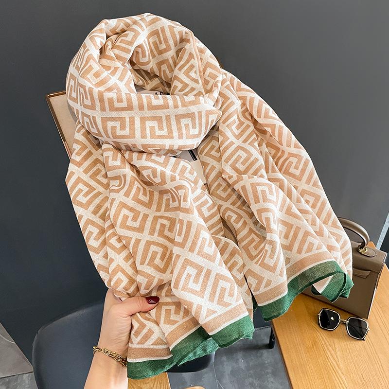 2024 Nova Chegada Cachecol de Algodão e Linho Estampado Modelado para Mulheres Estilo Coreano Versátil Artístico Quente Proteção de Pescoço Xale de Uso Duplo