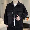 Casaco jeans masculino primavera e outono 2024 nova cor sólida americana jaqueta lavada moda lapela estudante casaco de outono